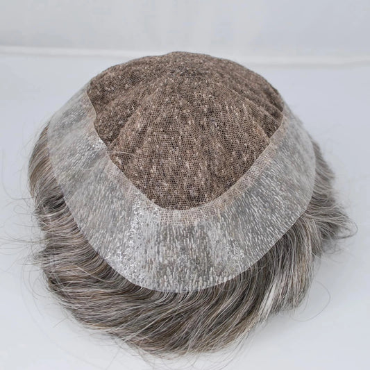 Custom-made French Lace With NPU With 2mm Front Lace Color Highlight Human Hair Toupee Hair Replacement System
