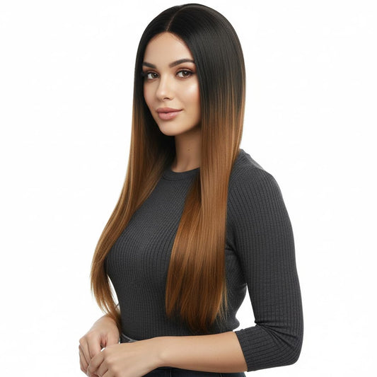 Upgrade your style instantly with this beautiful 28-inch Ombre straight hair wig for women. Designed...