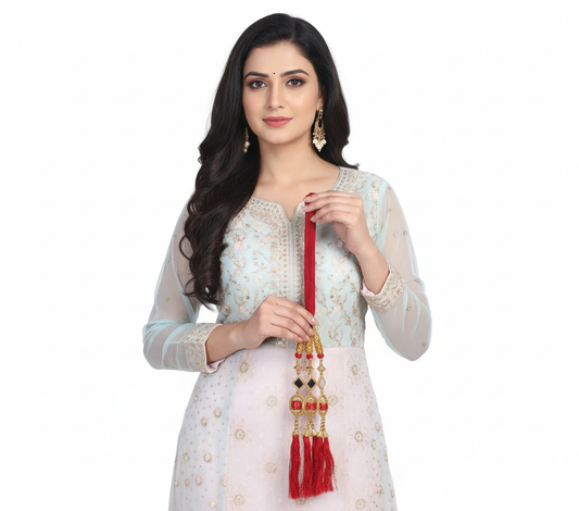 30-inch long Hair Parranda, featuring intricate Mirror Zari work for an elegant and regal touch....
