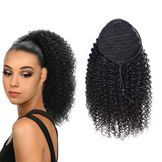 Kinky Curly Ponytail 12 inch long Natural Color Hair Extension Synthetic Hair Drawstring Puff Ponytail Hairpieces for Women