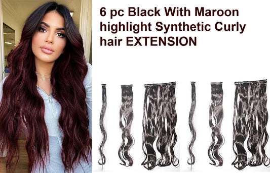 Ritzkart 6 PC Multicolored Curly-Straight Silky & Natural Feeling Long Clip On Synthetic Hair Extension For Women