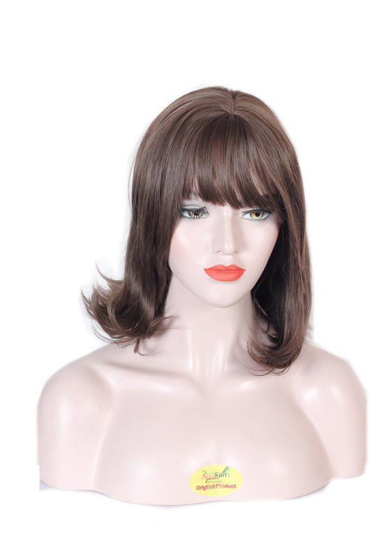 13 inch Tilted Bangs Shoulder Length Wave / Curly Wigs Cosplay Wig 245 NEW Brown...