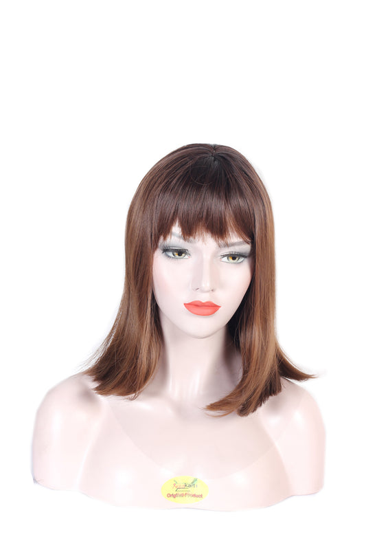 Ritzkart 32 inch long Brown Golden color Mix Straight latest Fashion With Flicks Style synthetic Women Hair Wig