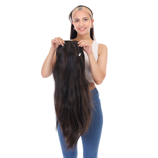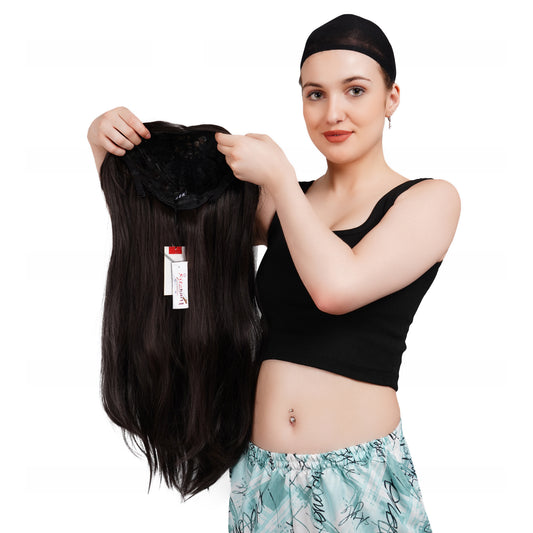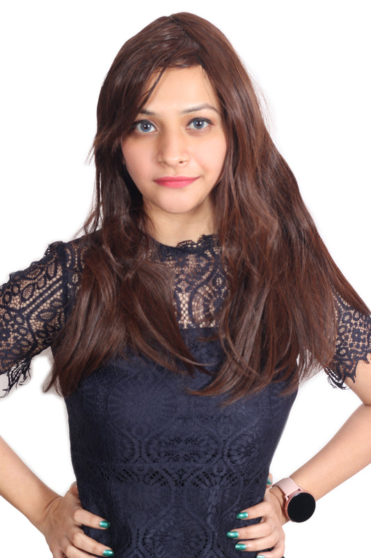 Ritzkart 30 Inch Long Dark Brown Soft Hair Middle Part Synthetic Glue less Hair Wig For Party & Daily Use