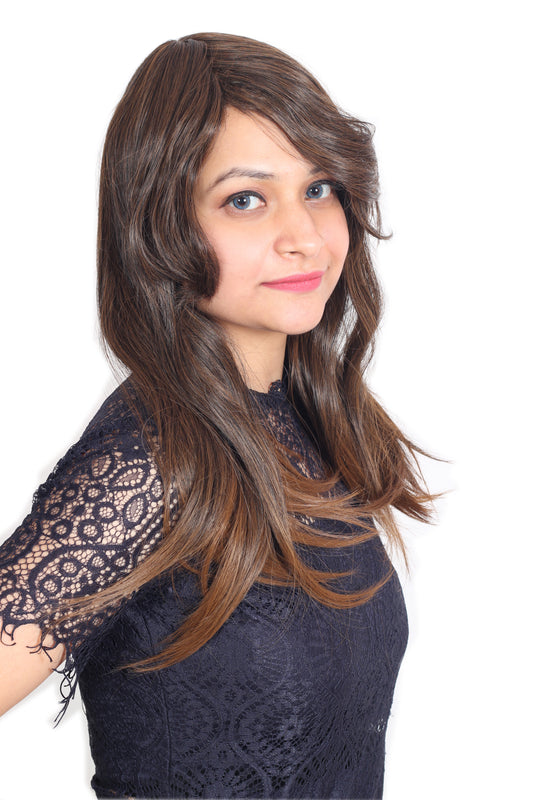 Ritzkart 25 inch long Brown Golden Mix color With Flicks latest Fashion synthetic Women Hair Wig