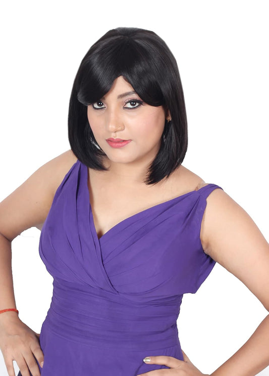 Ritzprime Women wig Natural black & Straight Short hair Synthetic Bob cut Wigs with Bangs..