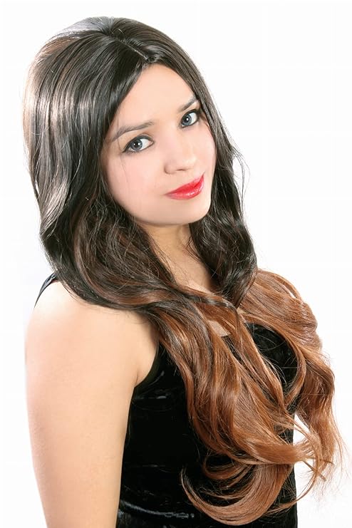 This smooth, wavy, side-parted wig is 25 cm long and has a Brown & Coffee...