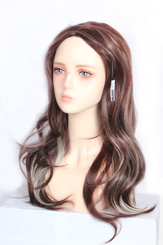 Ritzkart 26 Inch Long Hair Wavy Style Centre Part Brown & Off White Color Mix Synthetic Glue less Hair Wig For Women