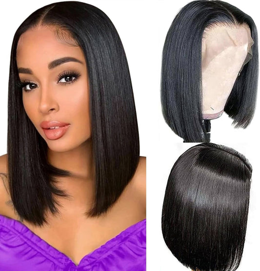 Bob Cut Women Hair Wig 10 Inch long Natural Black Color Chinese look Feel Real Hairline With Double Skin Base Hair Wig