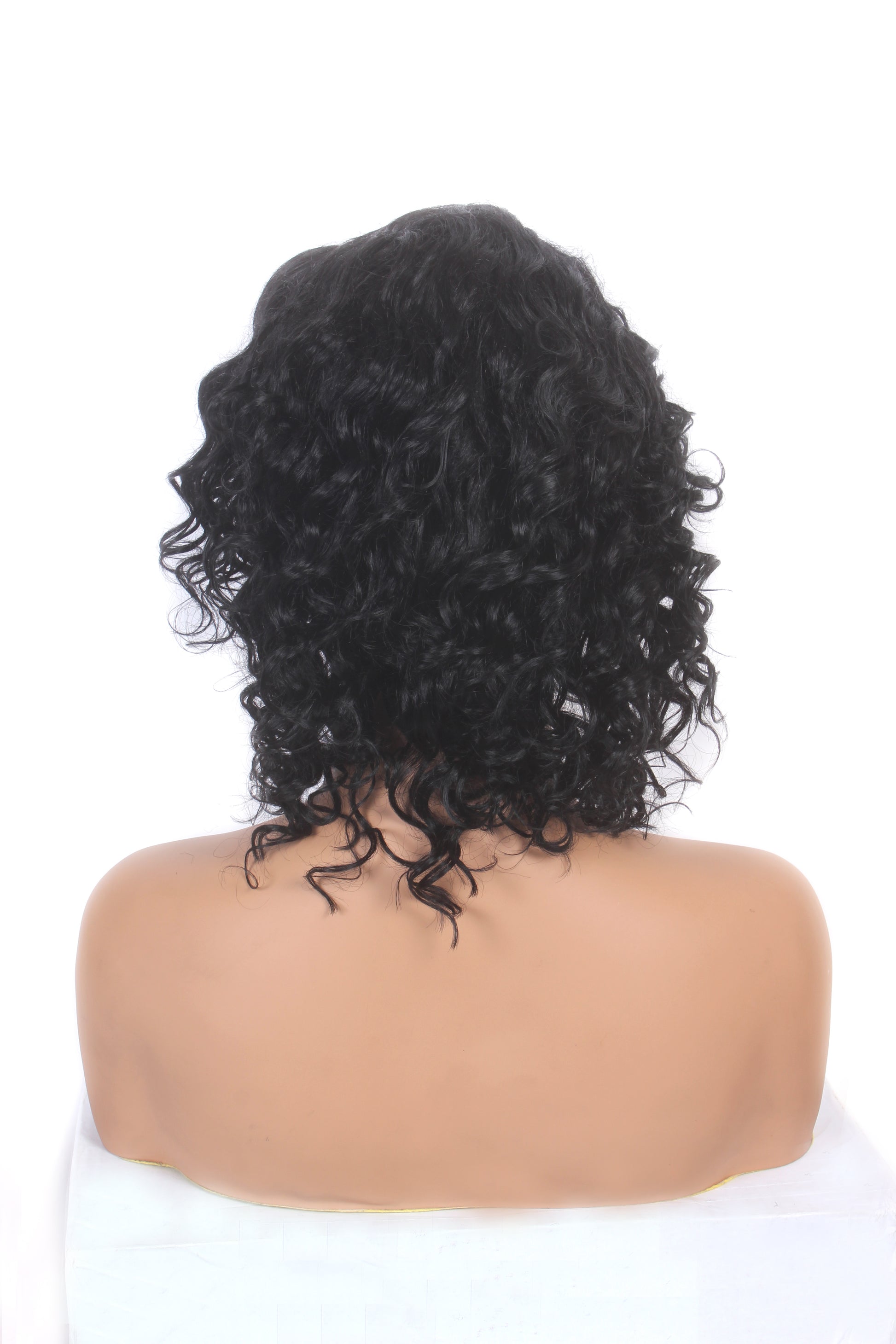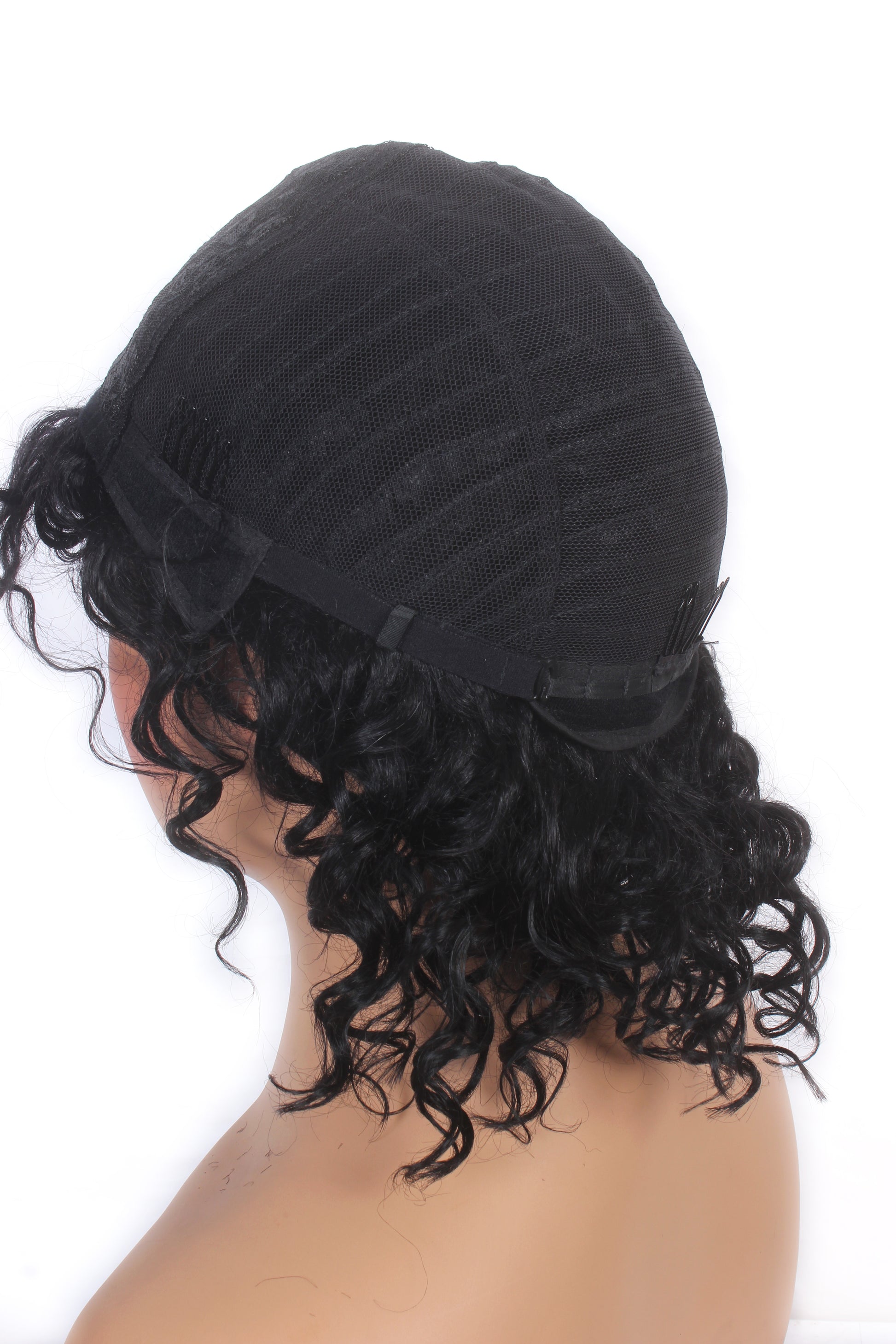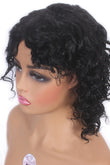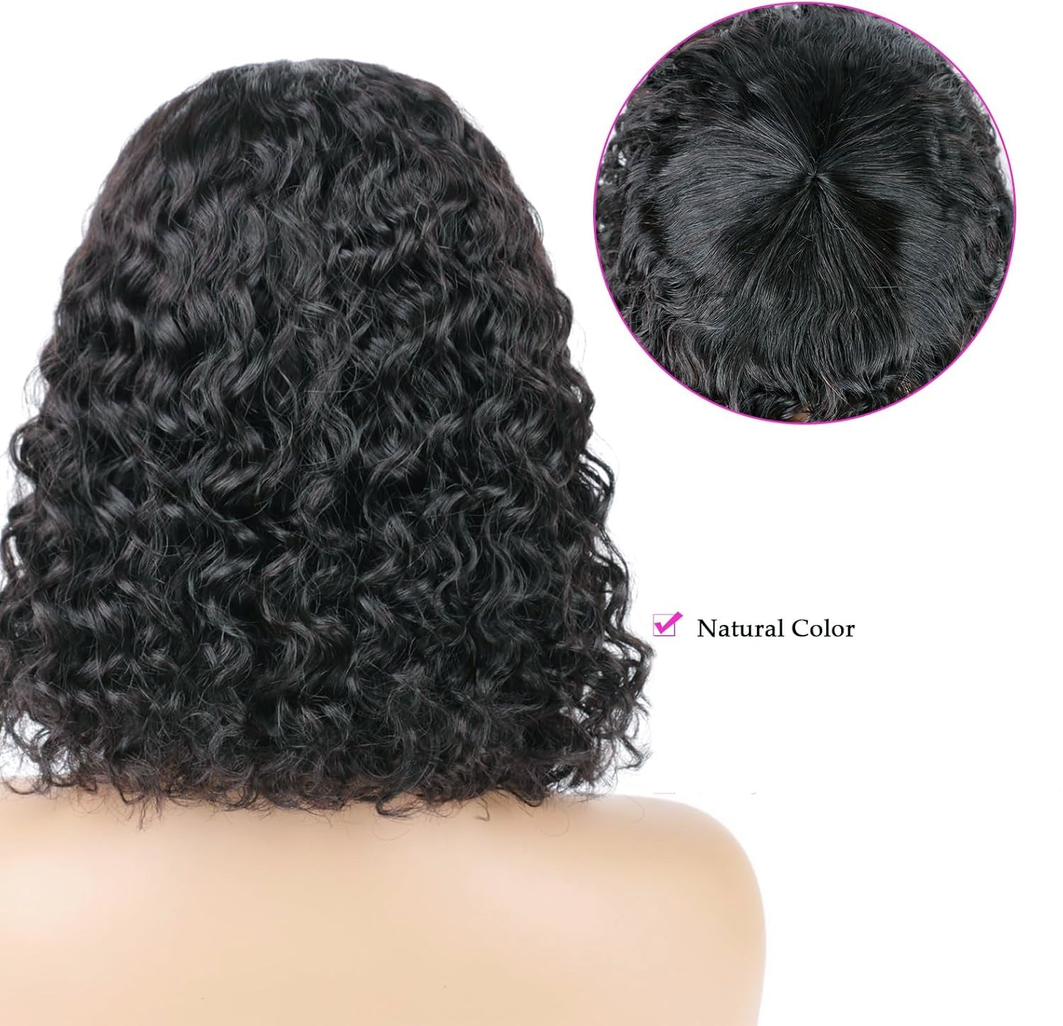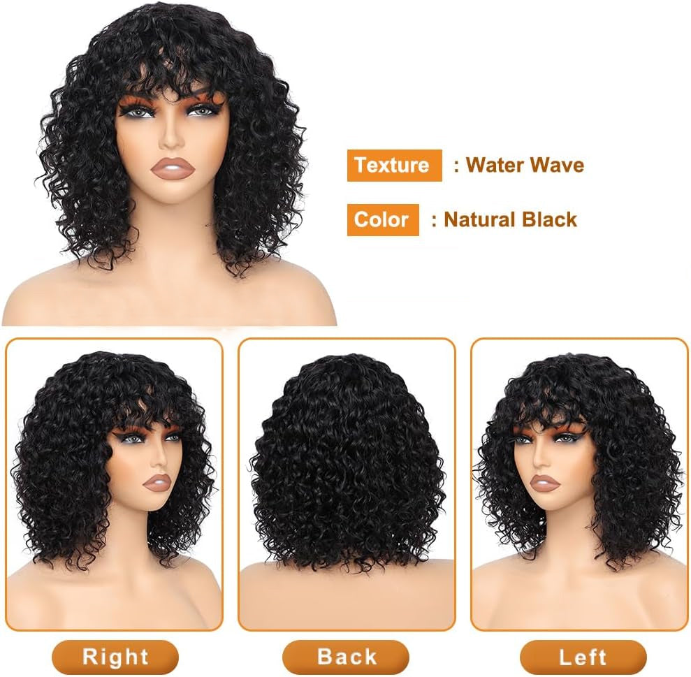 14 Inch Black Water Wave Wig Human Hair, Glueless, Adjustable Cap, Soft Matte Finish wig
