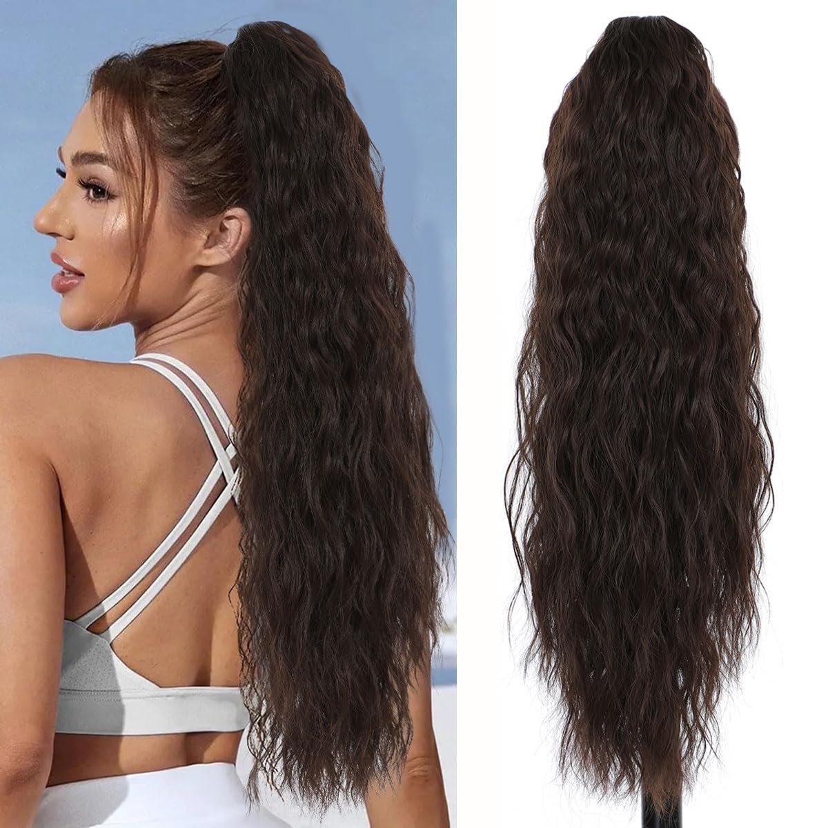 20 inch Long Drawstring Fluffy Ponytail Extension for Women Synthetic Long Curly Wavy Clip in Ponytail Hair Extensions for Daily Party Use