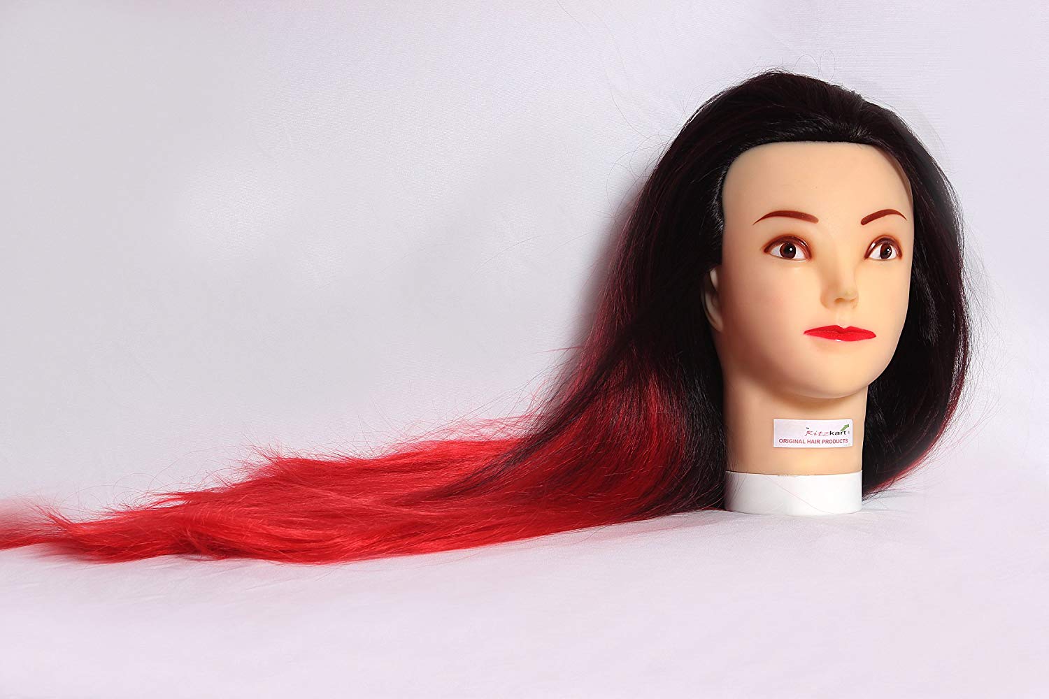 27 Inch Black and Red Mix soft & Long Straight Hair Synthetic Hair dummy for Practice / Cutting / styling For Trainers..