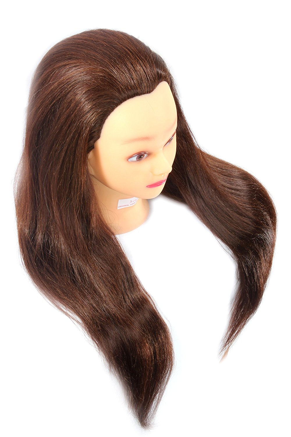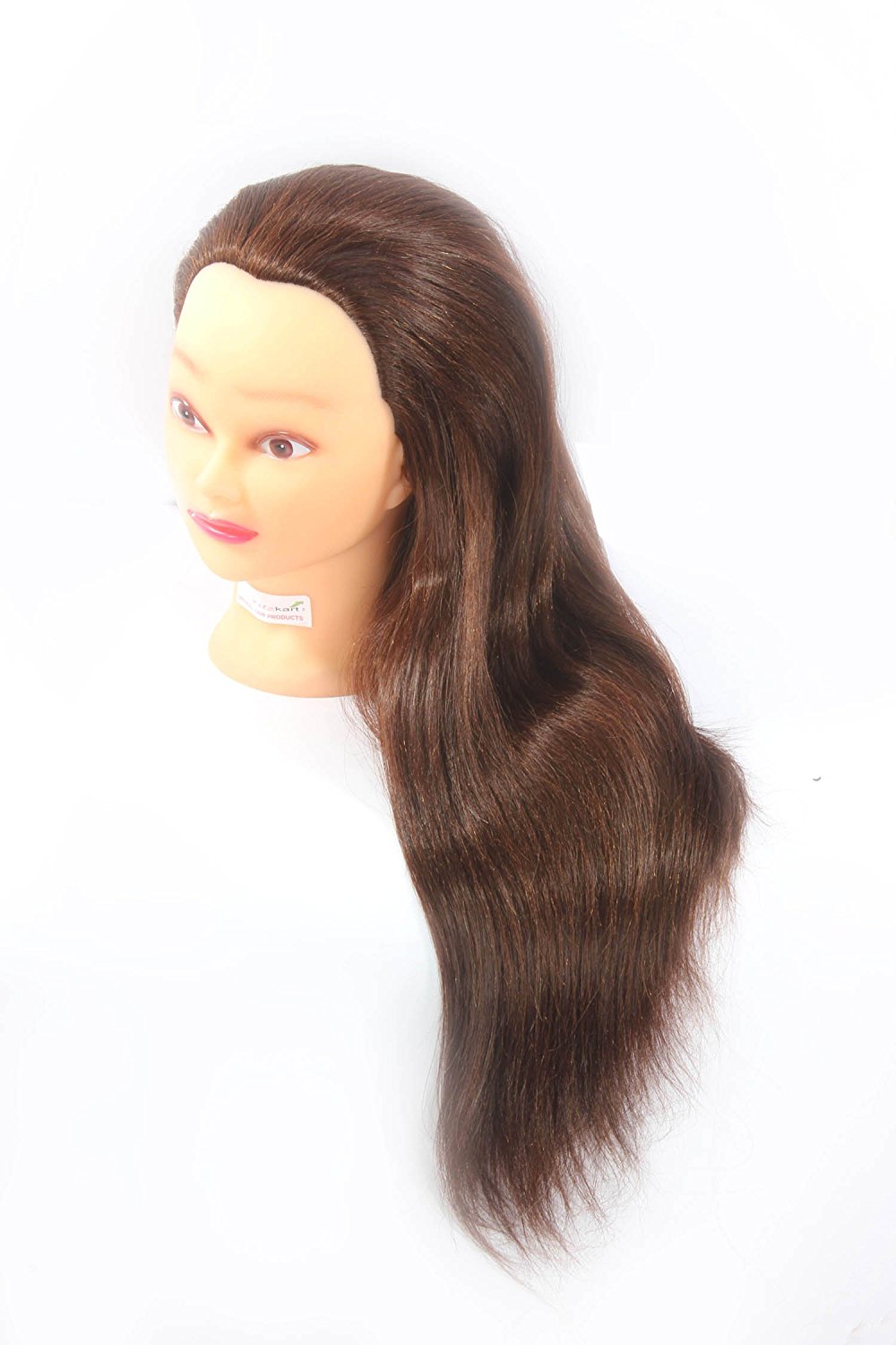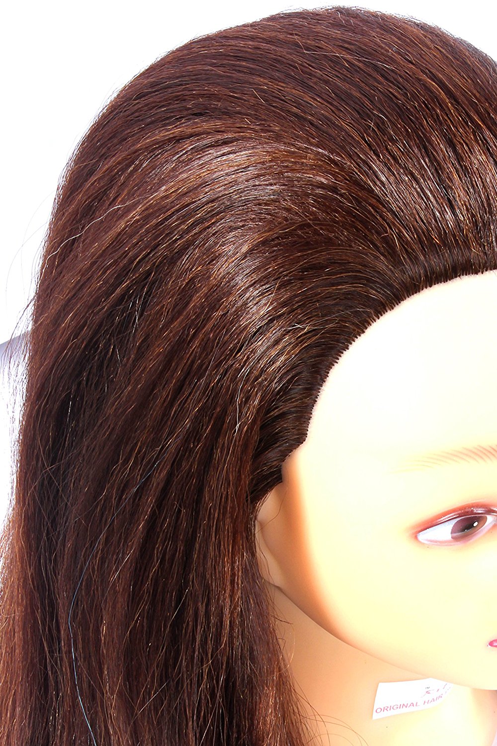 27 Inch Human Hair mix Long Hair Dummy Can Be Tong/Curly/Washable/Any Type Styling medium healthy hair brown silky texture(Dark Brown)