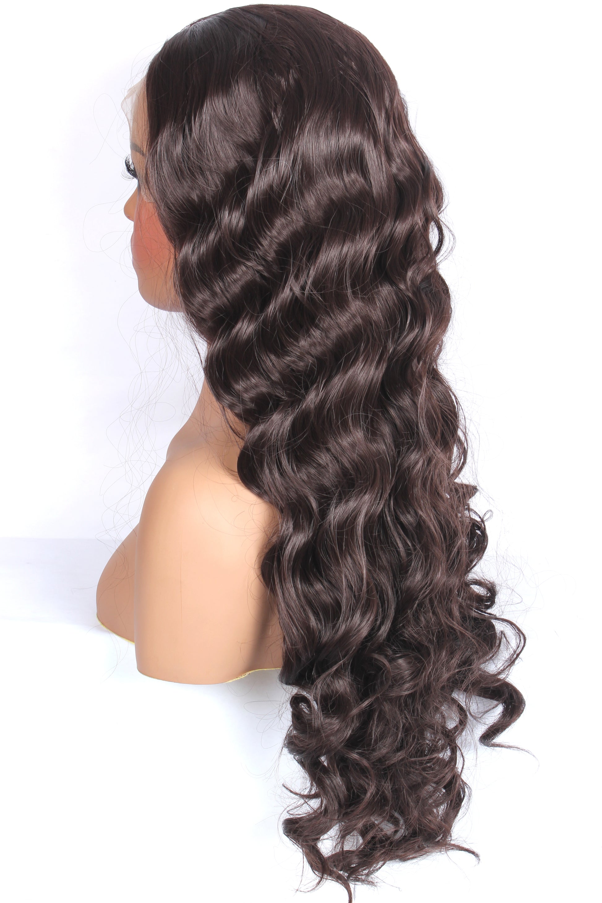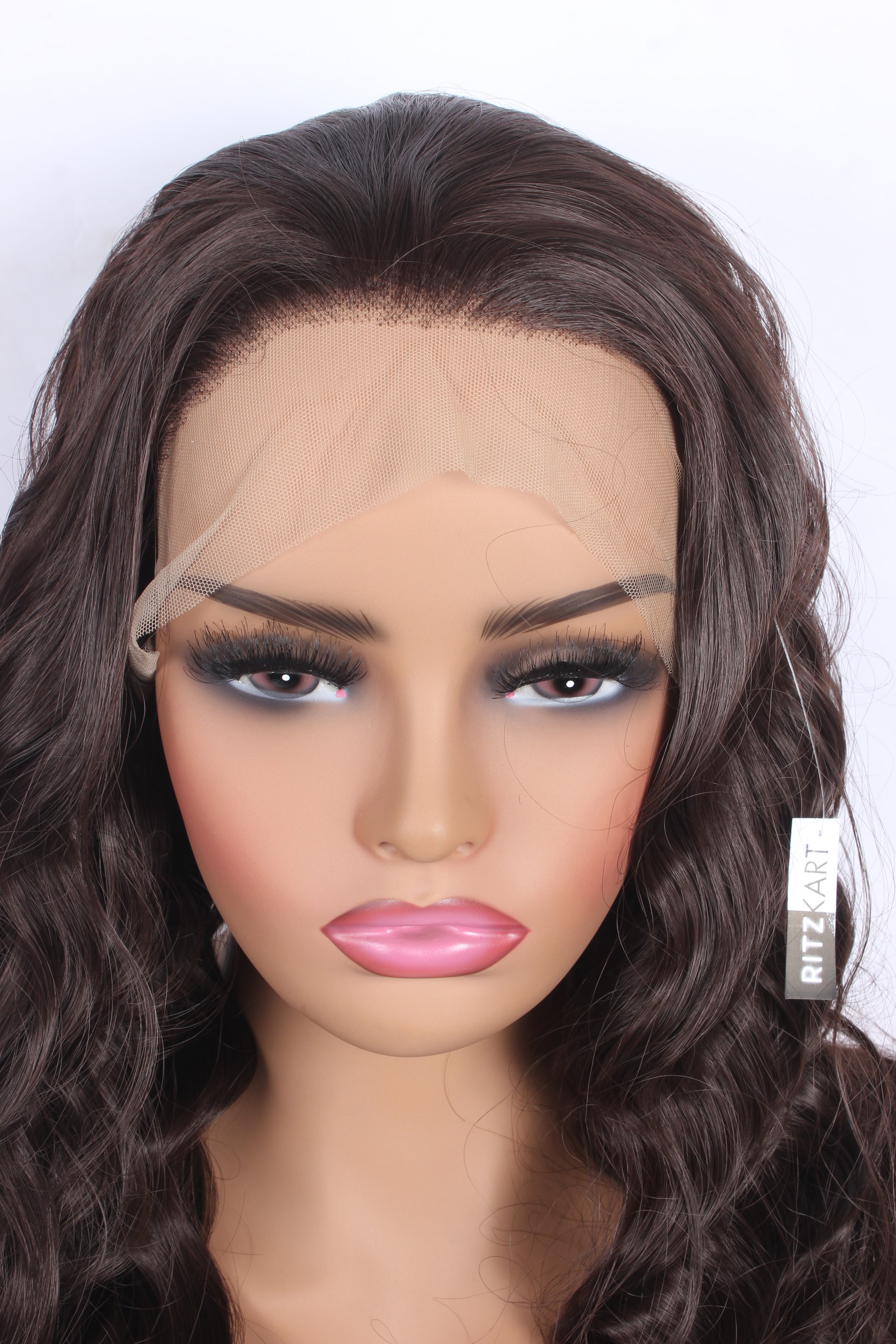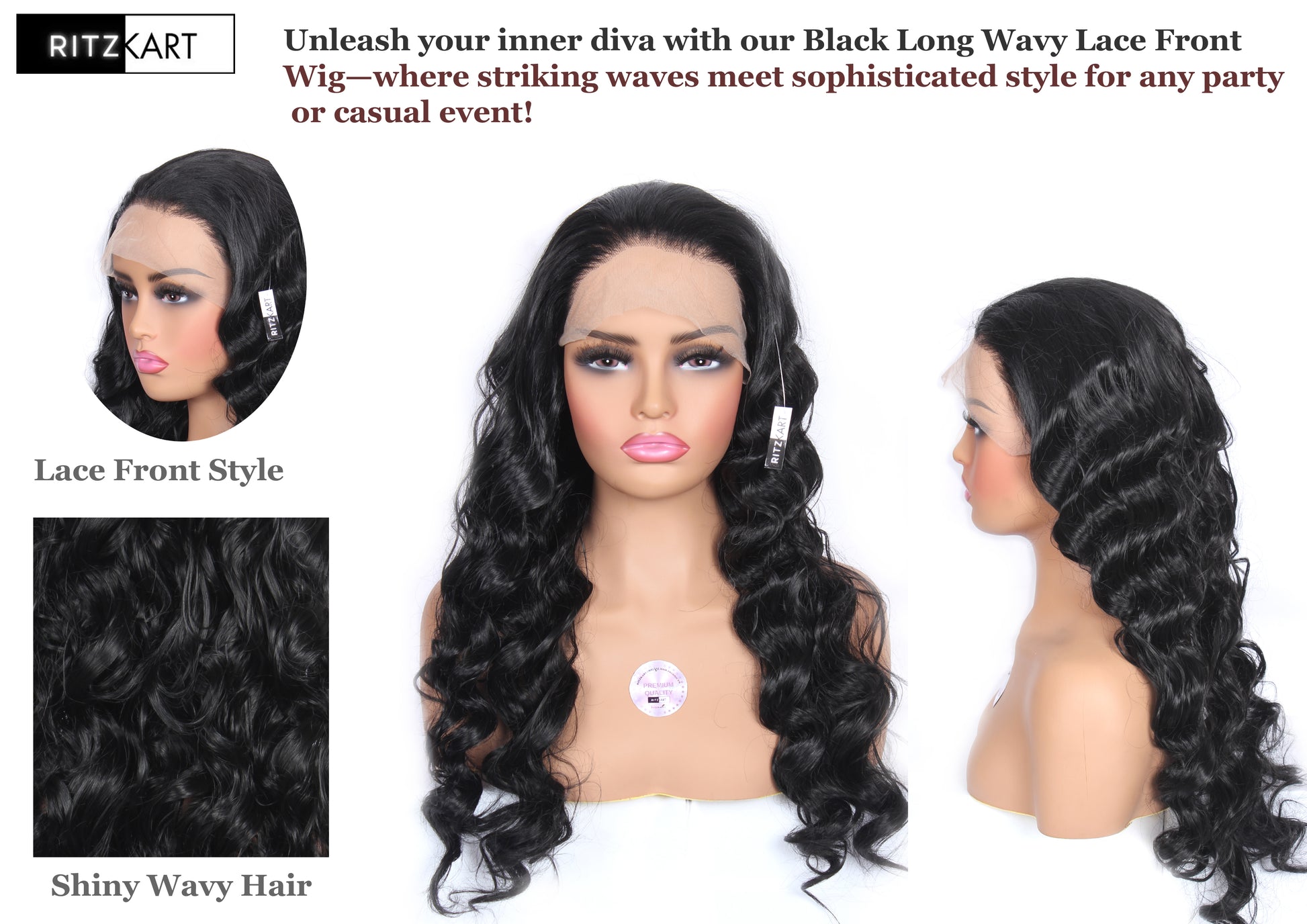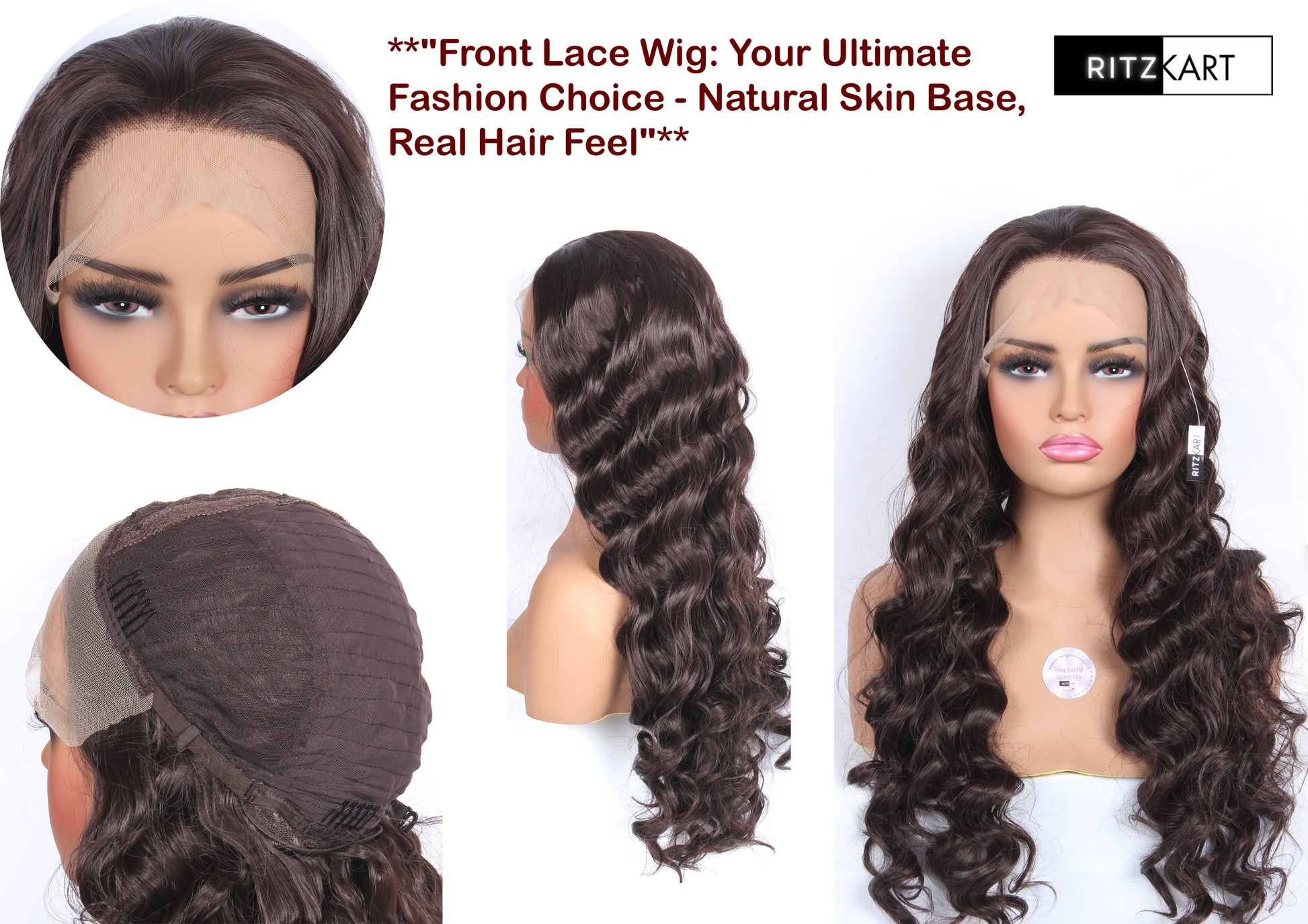 28 Inch Deep Wavy Synthetic Hair Front Lace Wig for Women – Natural Color, Trendy Glueless Hair Wig for Party & Casual Looks