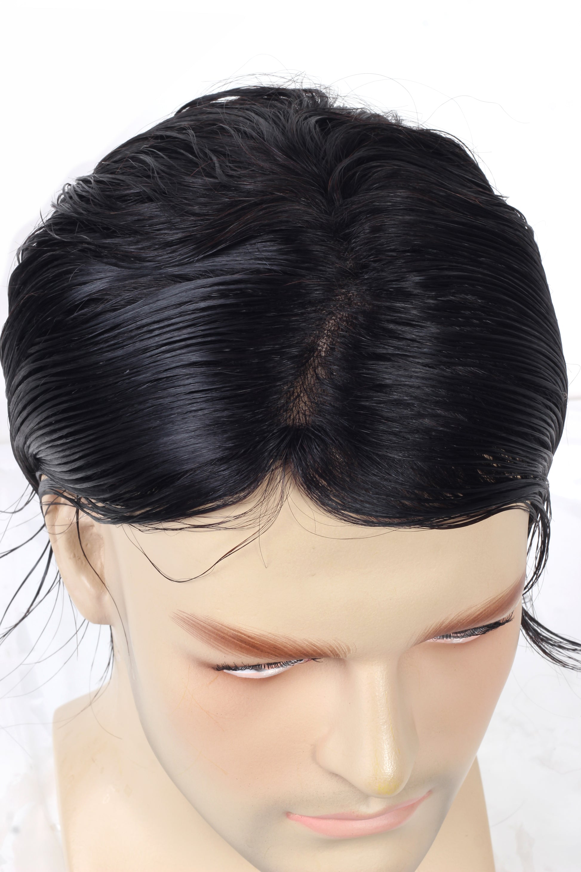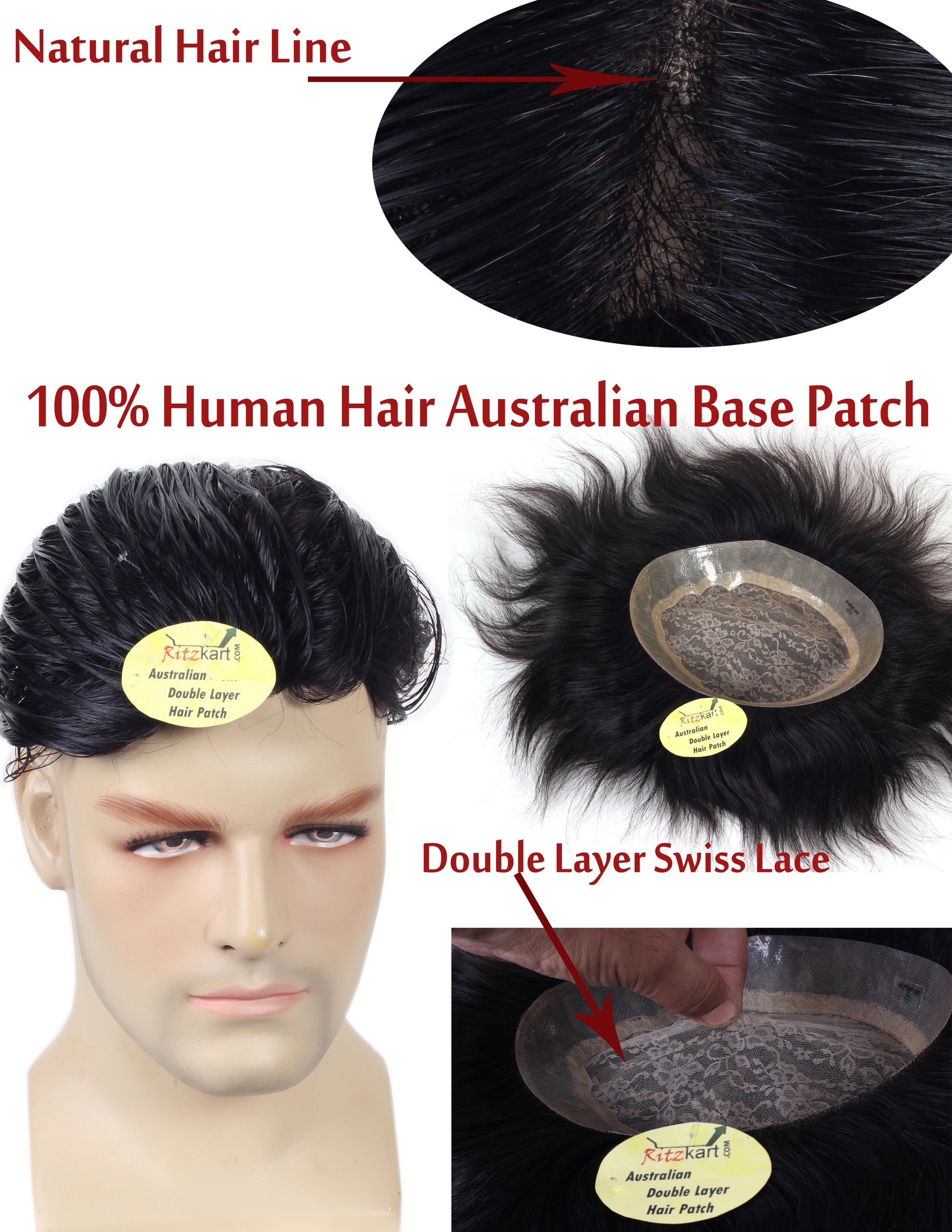 Australian base 100% Human hair Men patch Natural Skin Hair Line,With Double Layer Swiss Lace Hair Men Wig Hair Replacement System For Any Style & Long life