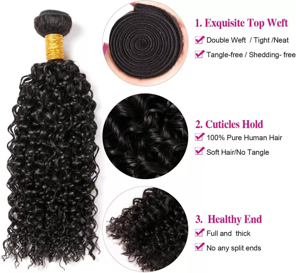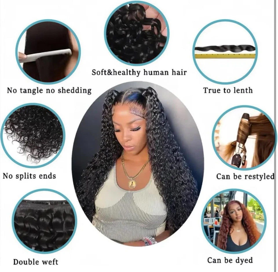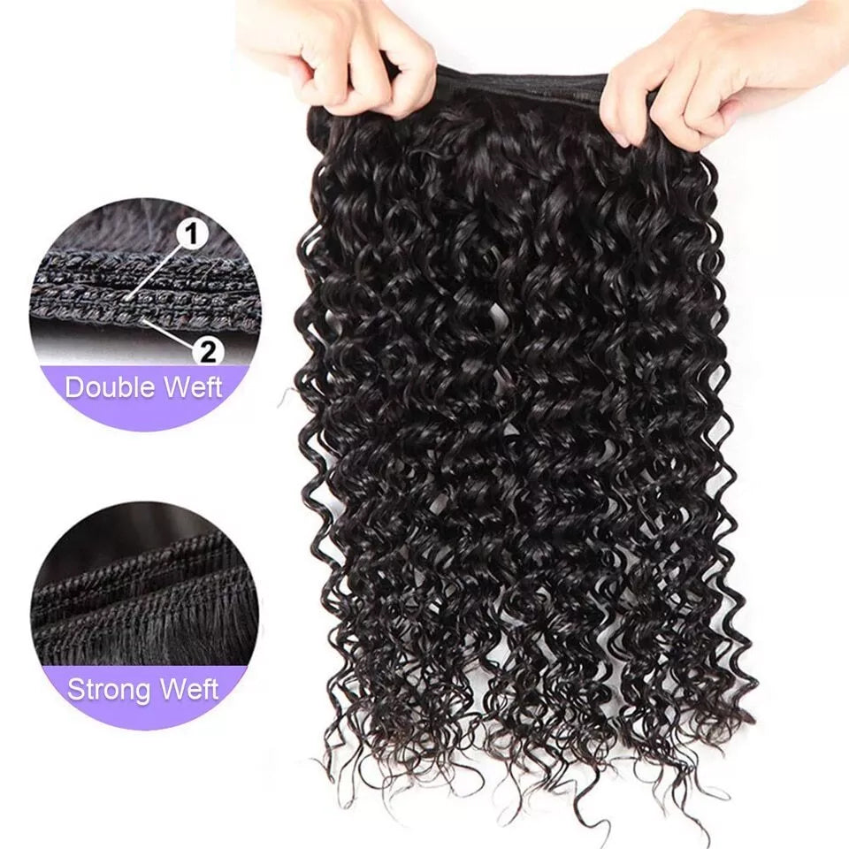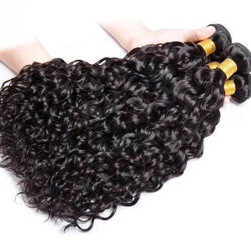 Bundle Hair Weft Water Wave Human Hair 3 Bundles Natural Black Unprocessed Virgin Curly/Wavy Hair Bundles for Seamless Weaving, Tangle-Free Bundle Hair Extensions for Women (DSP)