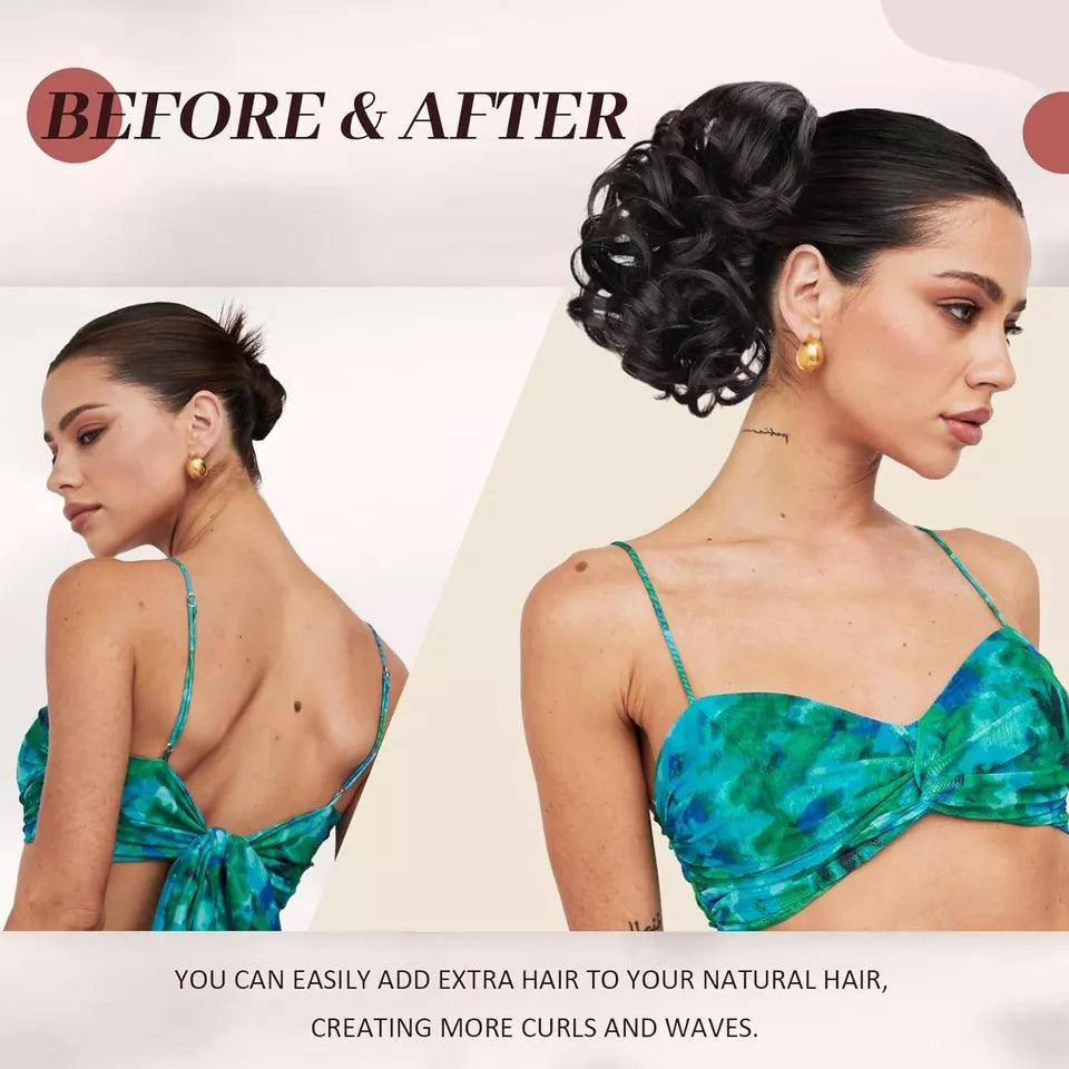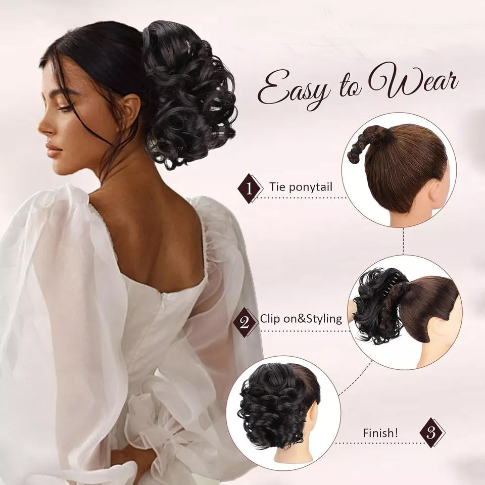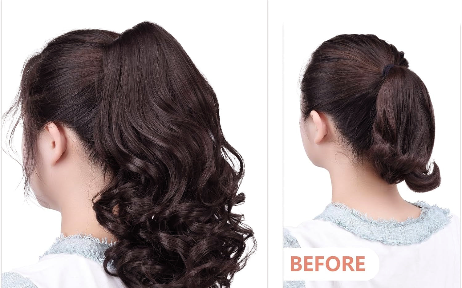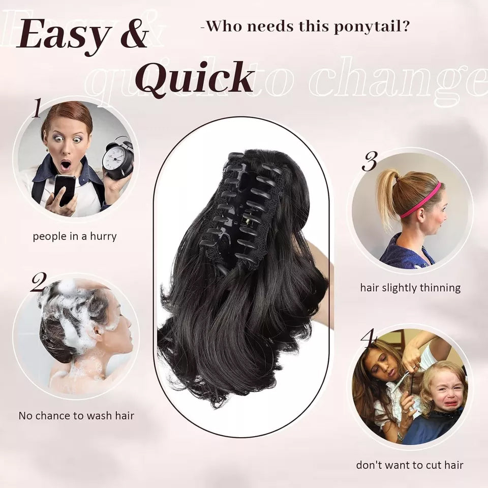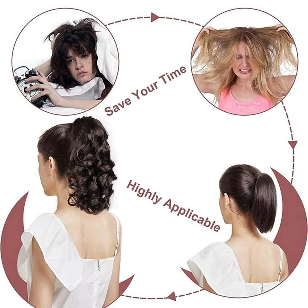 Made from Great-quality synthetic hair, this curly hair ponytail offers a natural shine and soft texture that blends seamlessly with your real hair. Whether you prefer a short, wavy ponytail for casual outings or a long, elegant ponytail look for special occasions, this clip claw ponytail extension ensures a secure fit and all-day comfort.