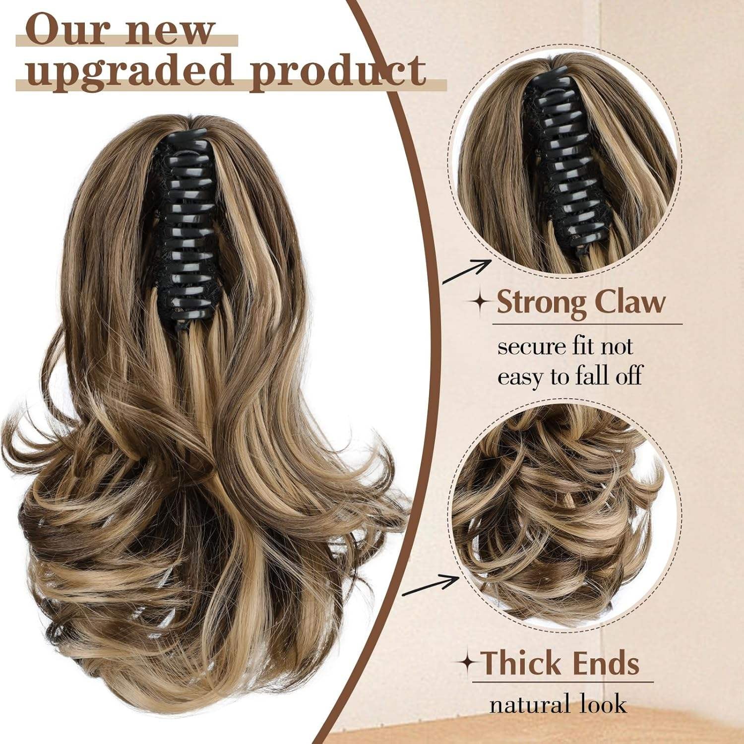 Claw Ponytail Hair Extension 12 Inch Short Synthetic Wavy Ponytail Hair Extension for Women Curly Hair Ponytail with Secure Clip Claw Natural-Looking Long Hairpiece for Easy Styling