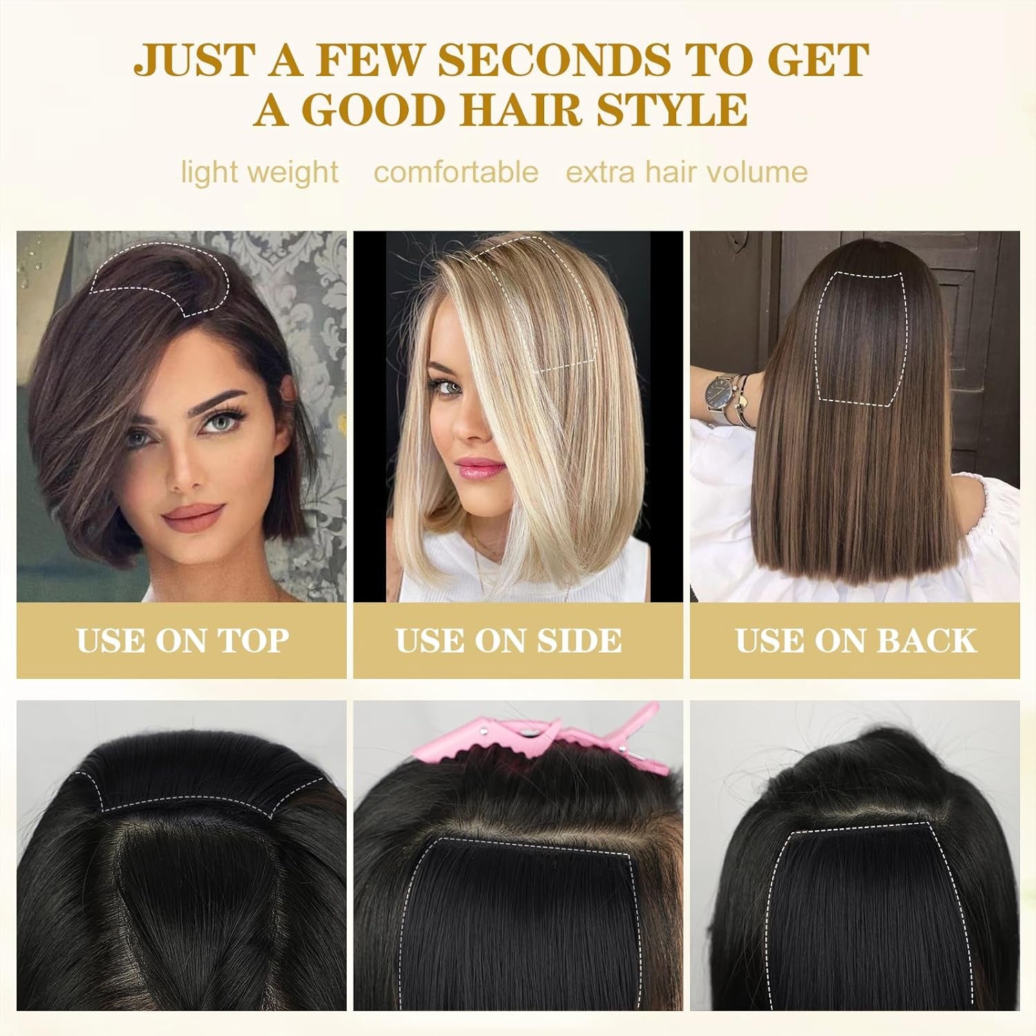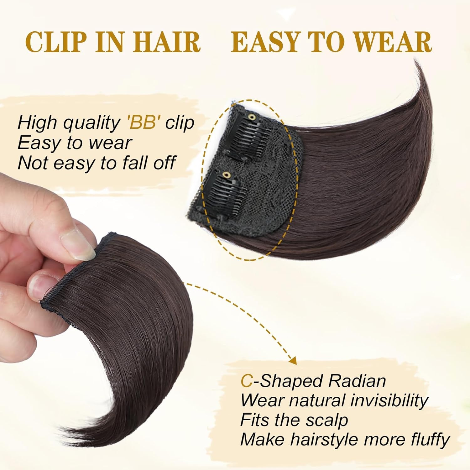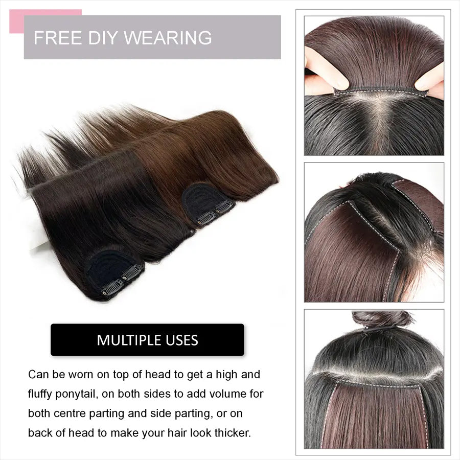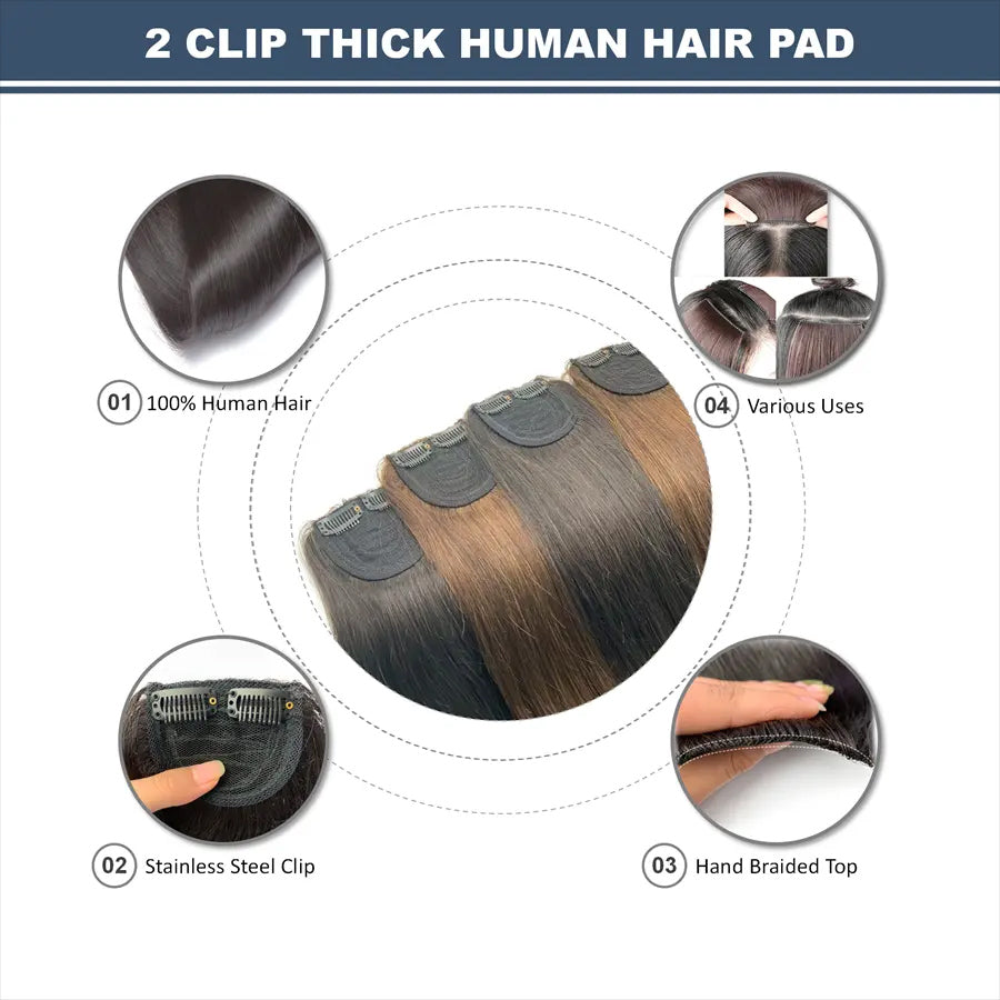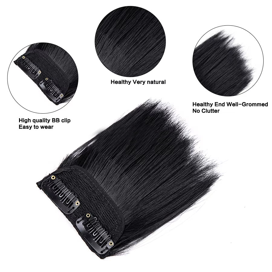 Clip-On Hairpiece – Short Straight Thick Hair for Women's Bald Areas, One Piece Hair Piece for Thinning Hair, Natural Human Hair, High-Quality Clip-On Fringe, 2 Clip Hair Patch for Instant Coverage and Natural Volume, Size: 8 Inch, Brand: Ritzkart
