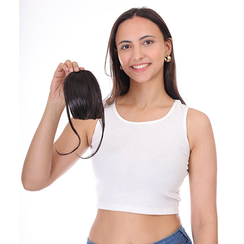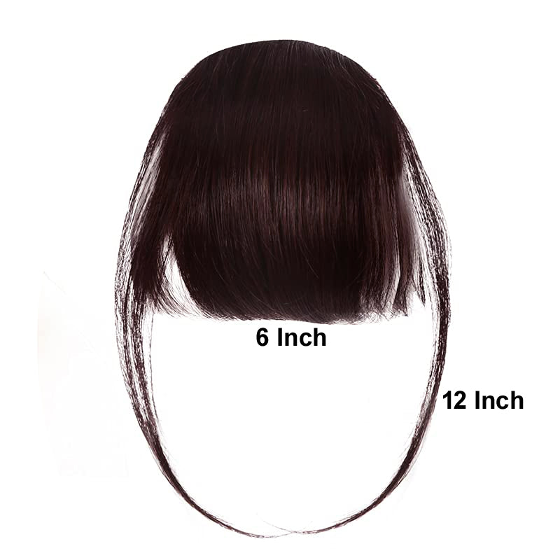 Curtain Bangs Light Weight Synthetic Straight Hair Fringe Clip-On, 6-Inch Natural Dark Brown with Straight Bottom and Curly Side Bangs – Perfect for Larger Heads, Ideal for Girls & Women , Brand By Ritzkart