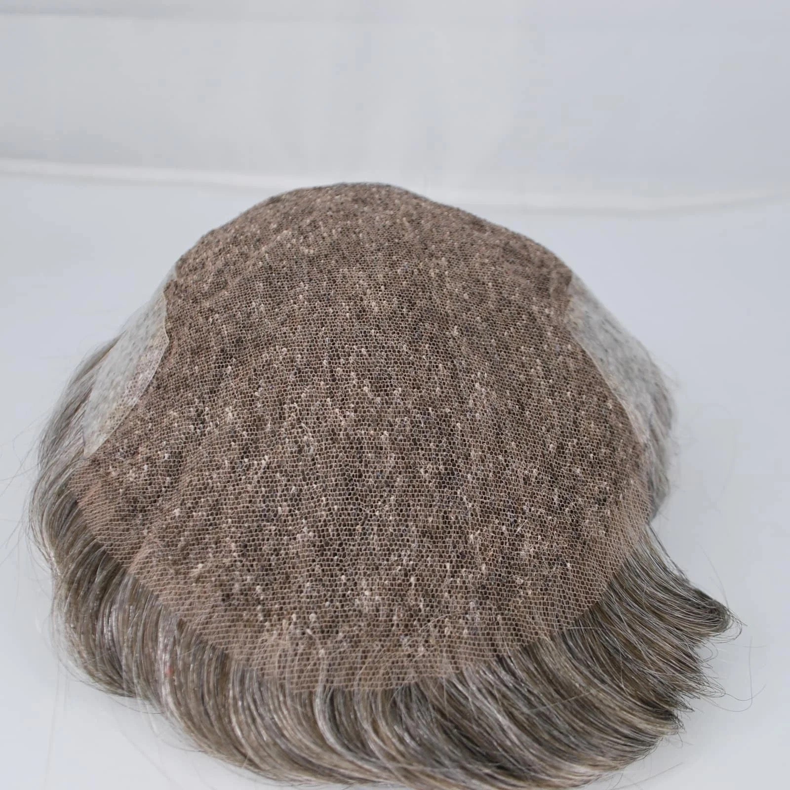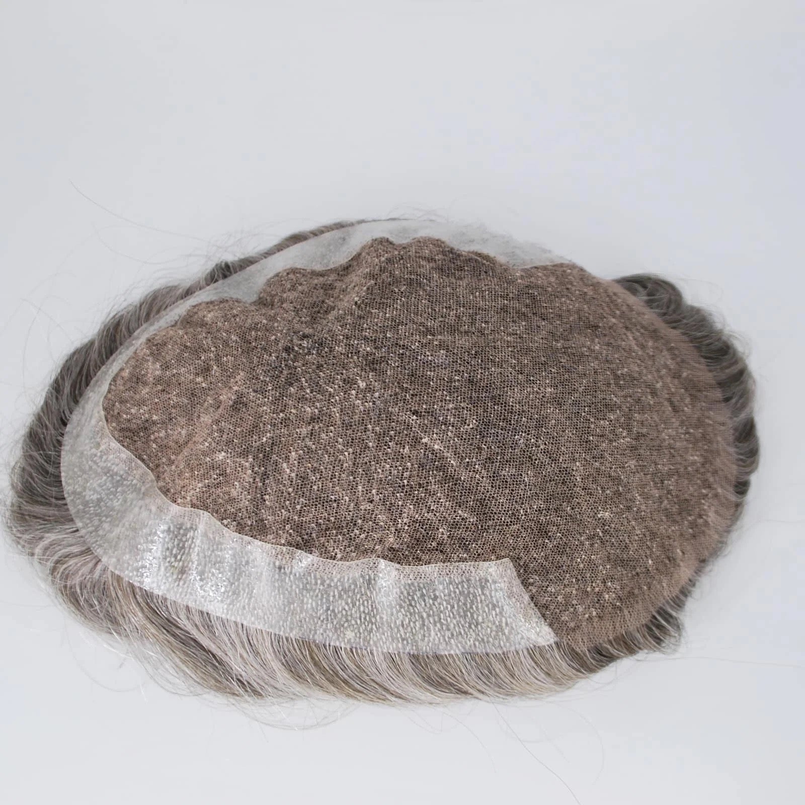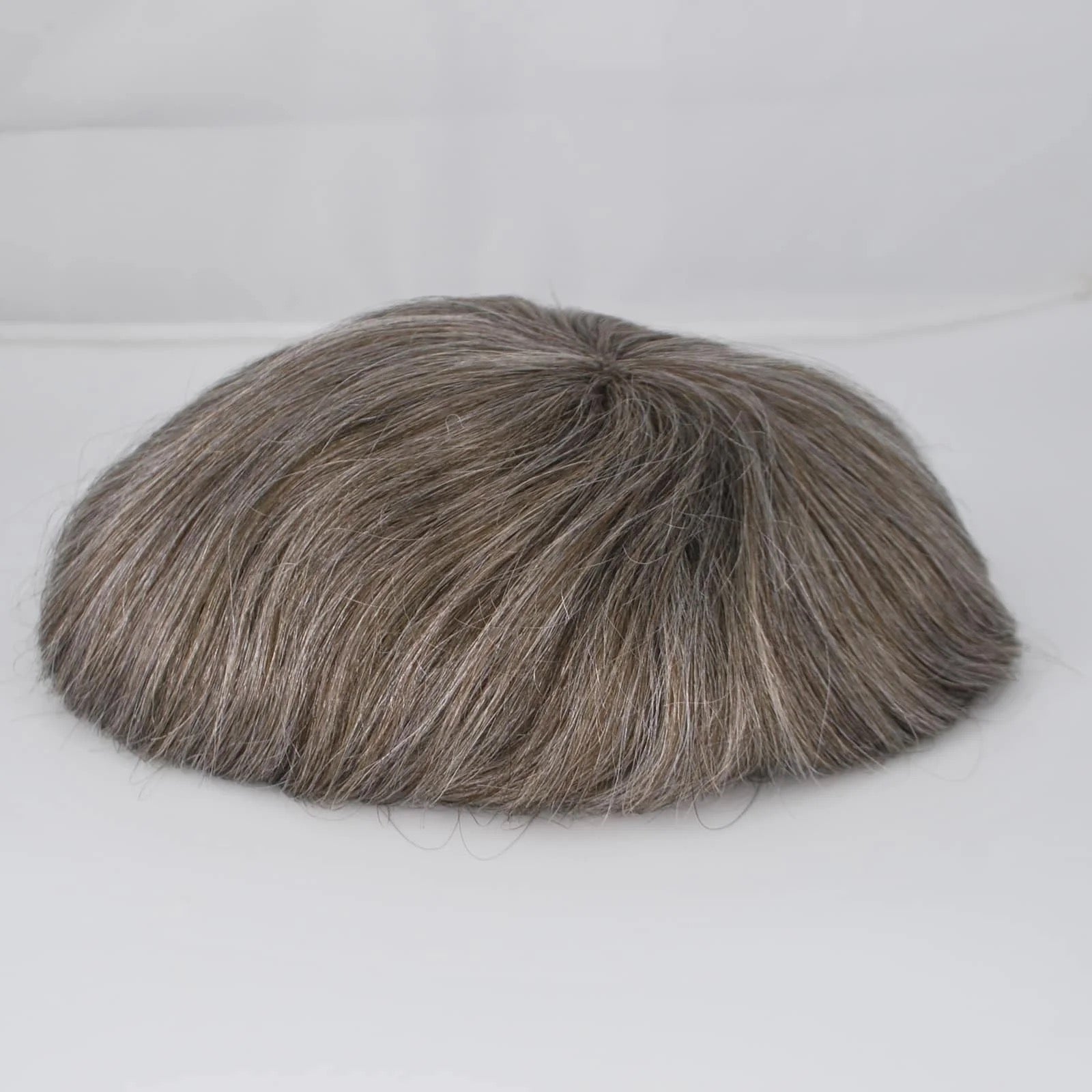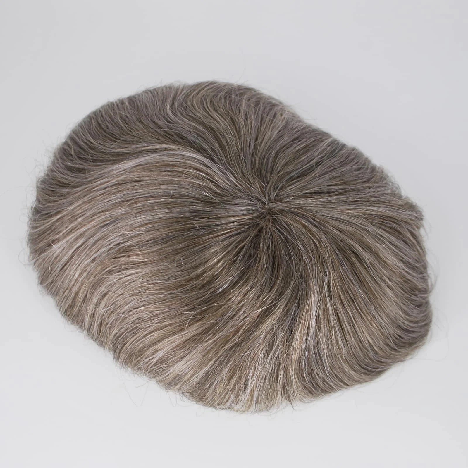 Custom-made French Lace With NPU With 2mm Front Lace Color Highlight Human Hair Toupee Hair Replacement System