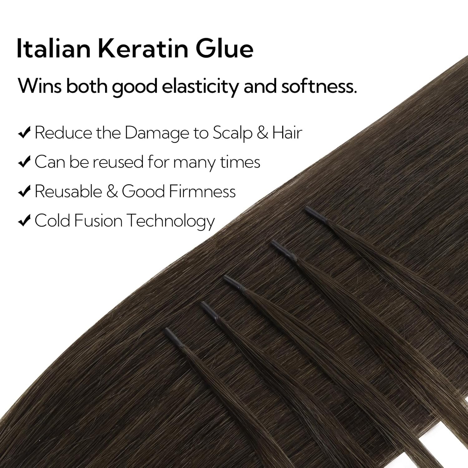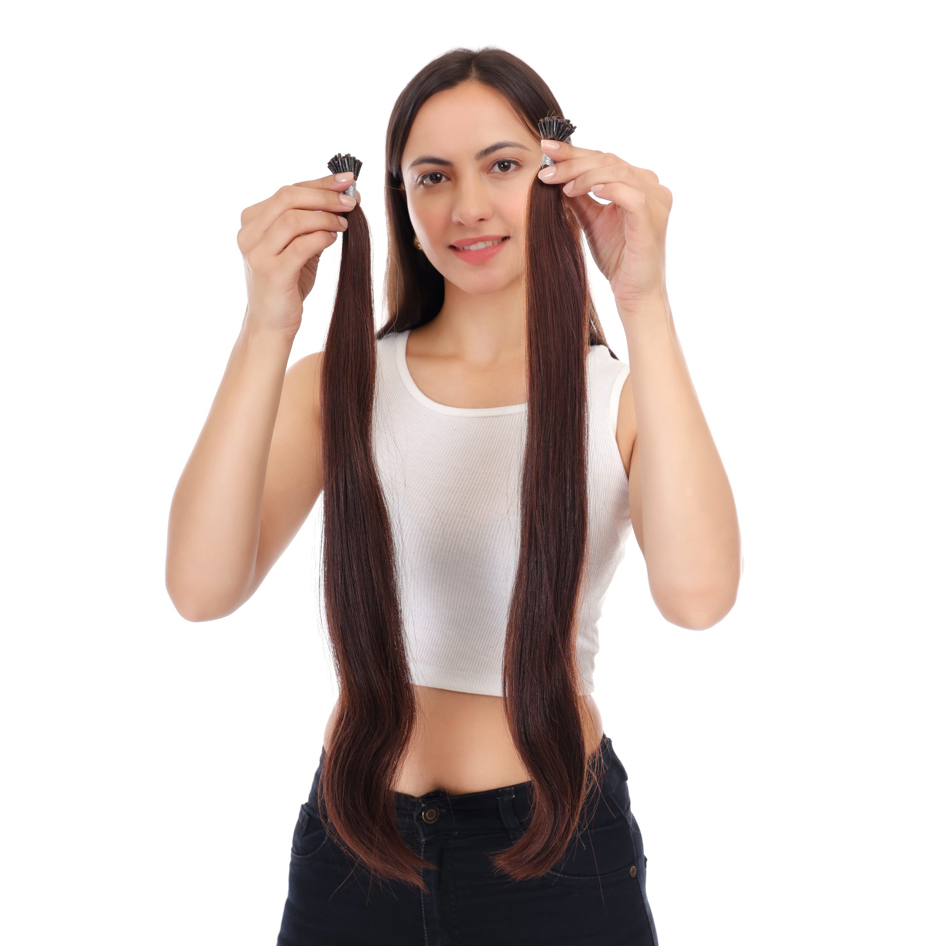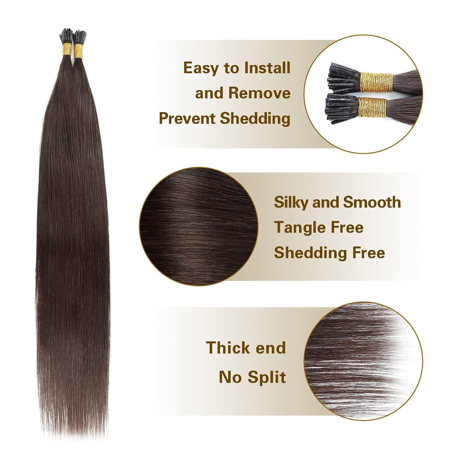 Dark Brown Soft & Silky Natural Straight Hair Extensions, Double Drawn 22-Inch Long Keratin I-Tip Design Made with Remy Human Hair Perfect for Women & Girls by Ritzkart (100 PC)