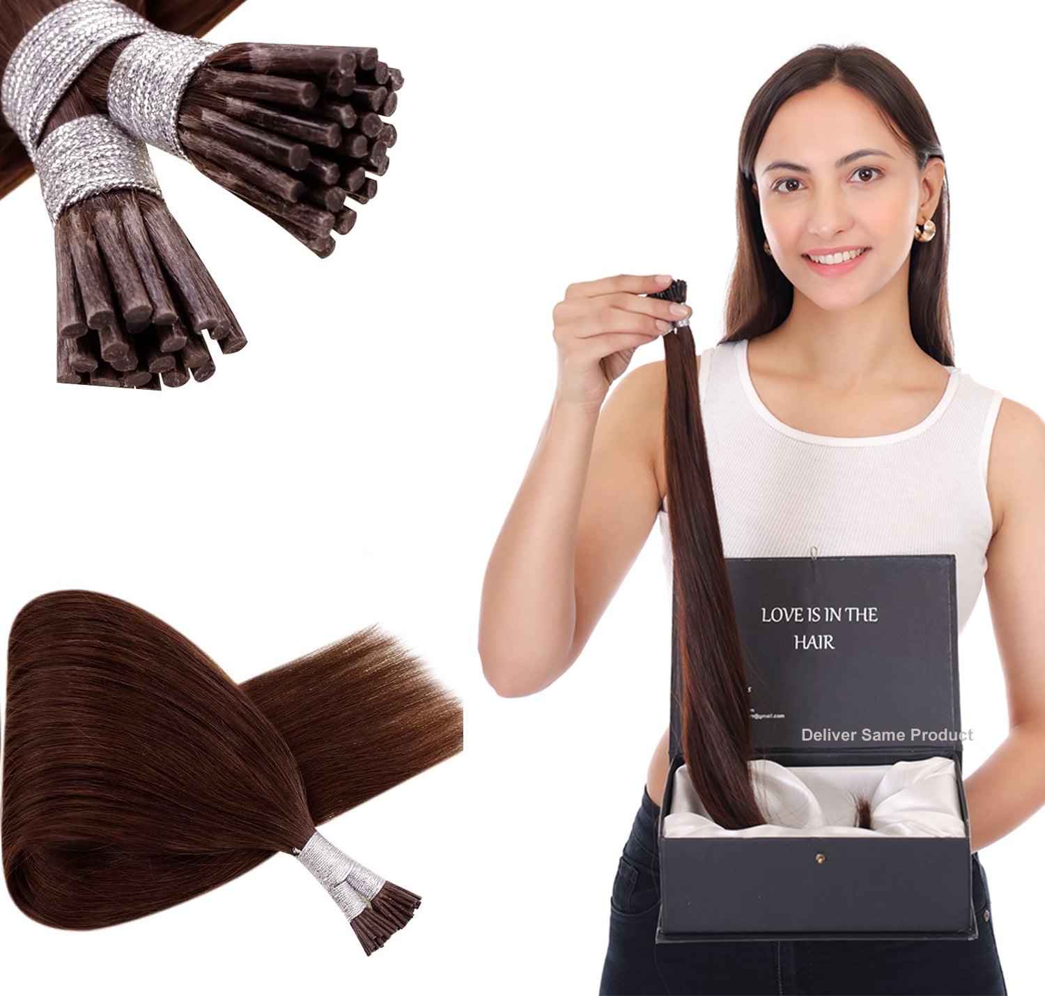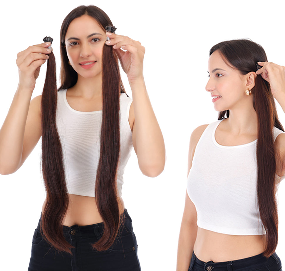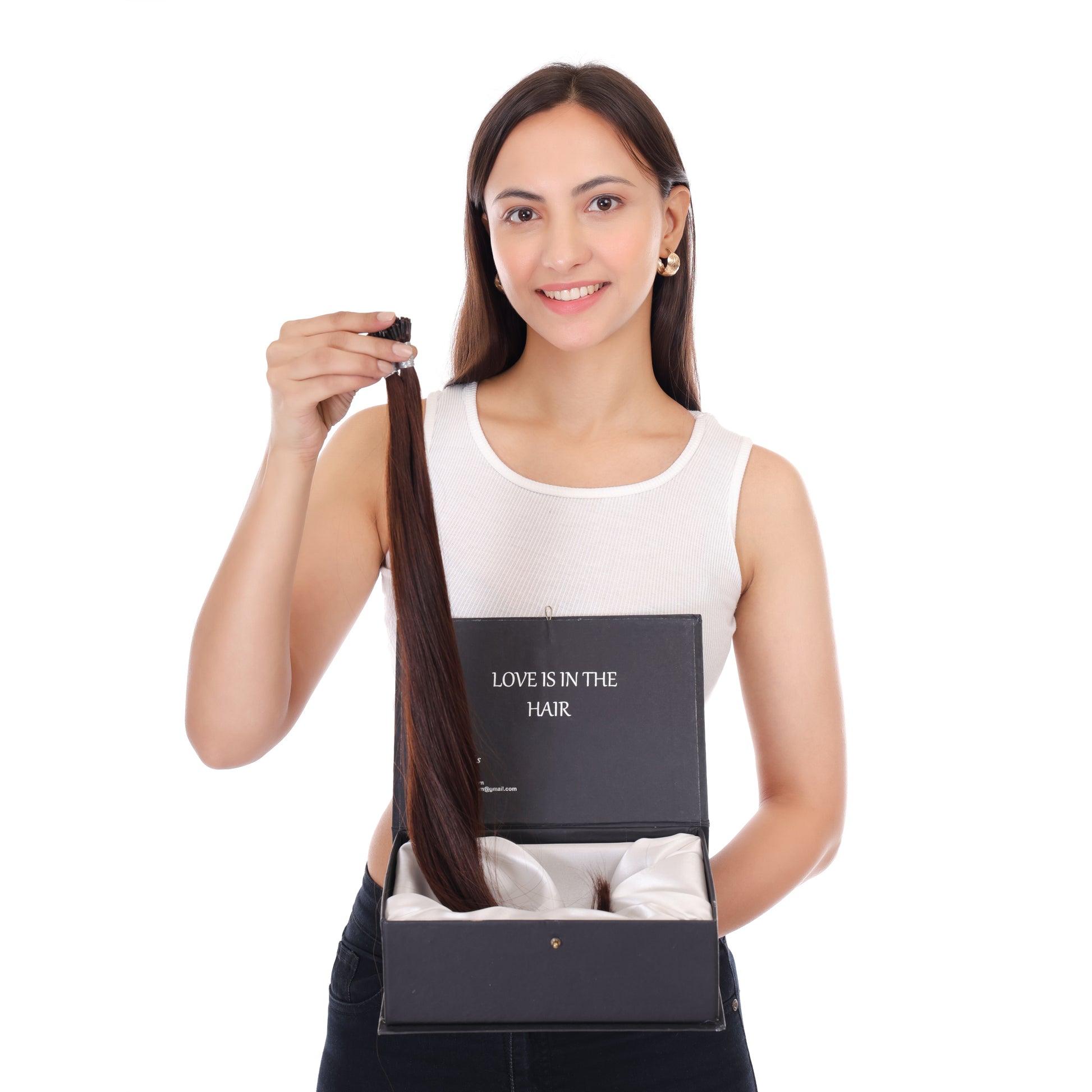 Dark Brown Soft & Silky Natural Straight Hair Extensions, Double Drawn 22-Inch Long Keratin I-Tip Design Made with Remy Human Hair Perfect for Women & Girls by Ritzkart (100 PC)