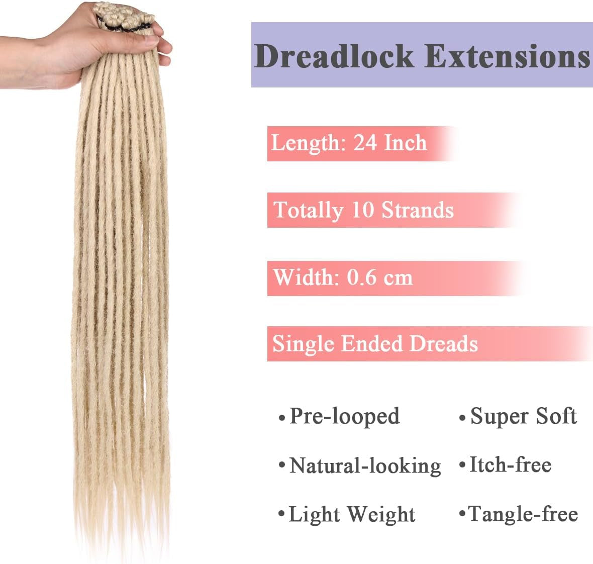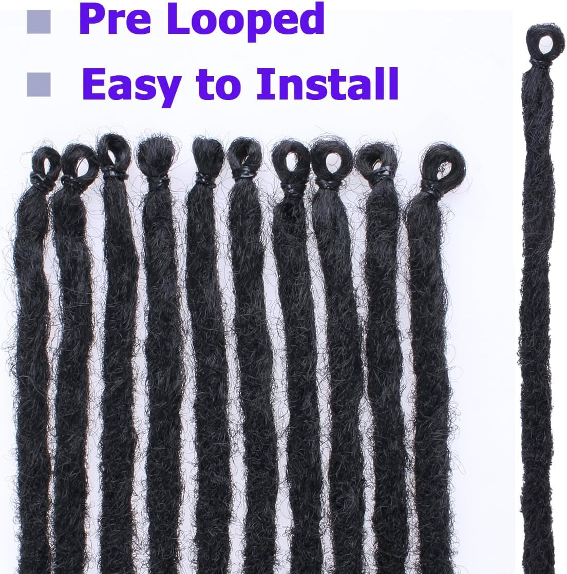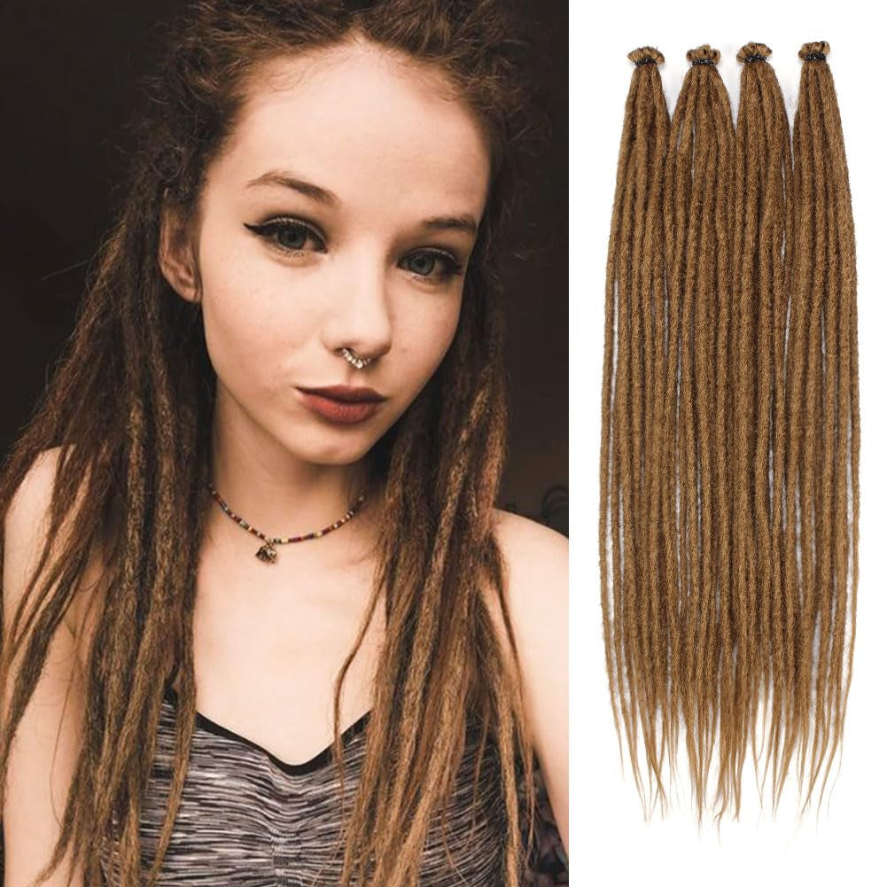 Dreadlock Extensions 24 Inch 10 Strands Pre-Looped Synthetic Locs Natural Color Lightweight & Tangle-Free Easy Install Single-Ended Straight Dreads for Women