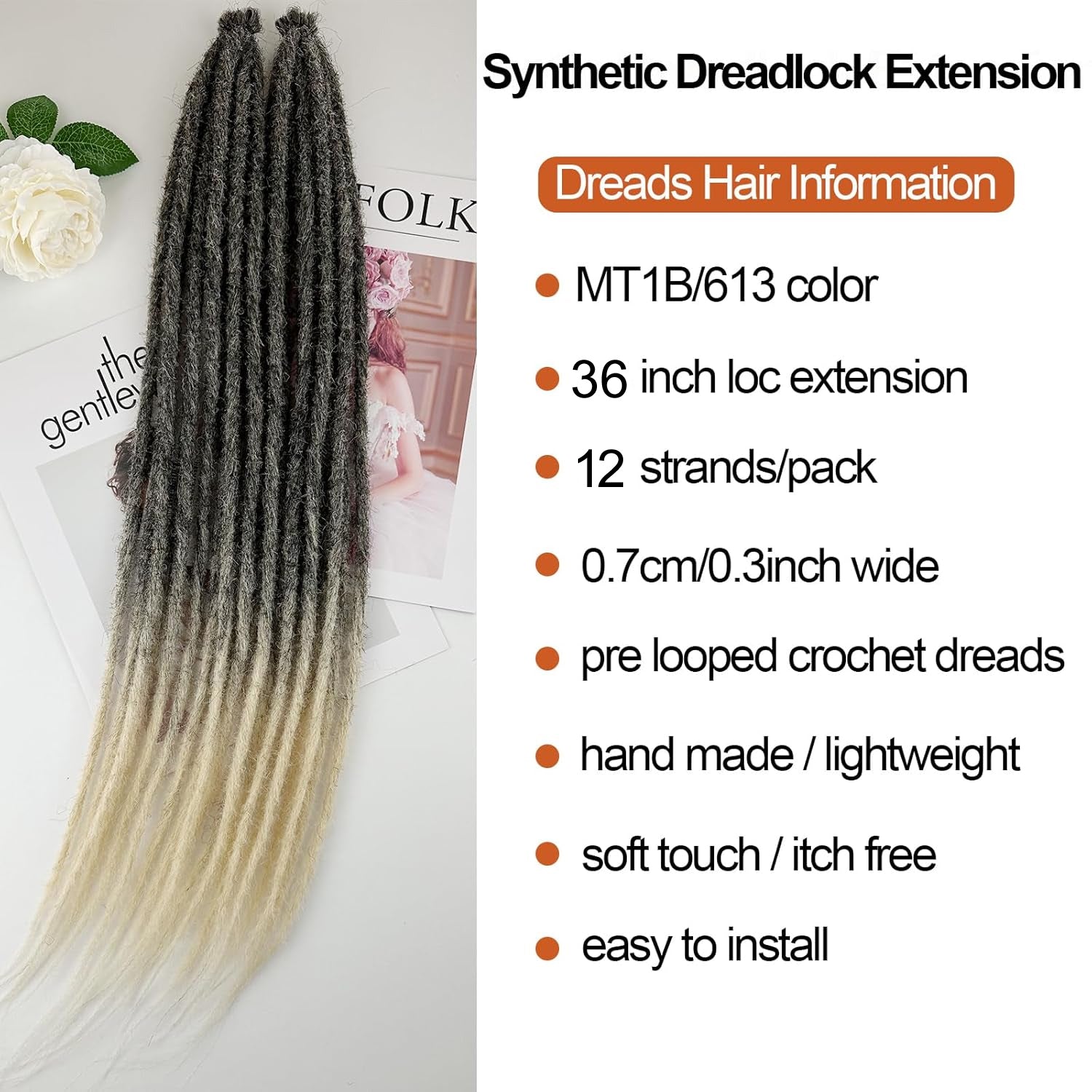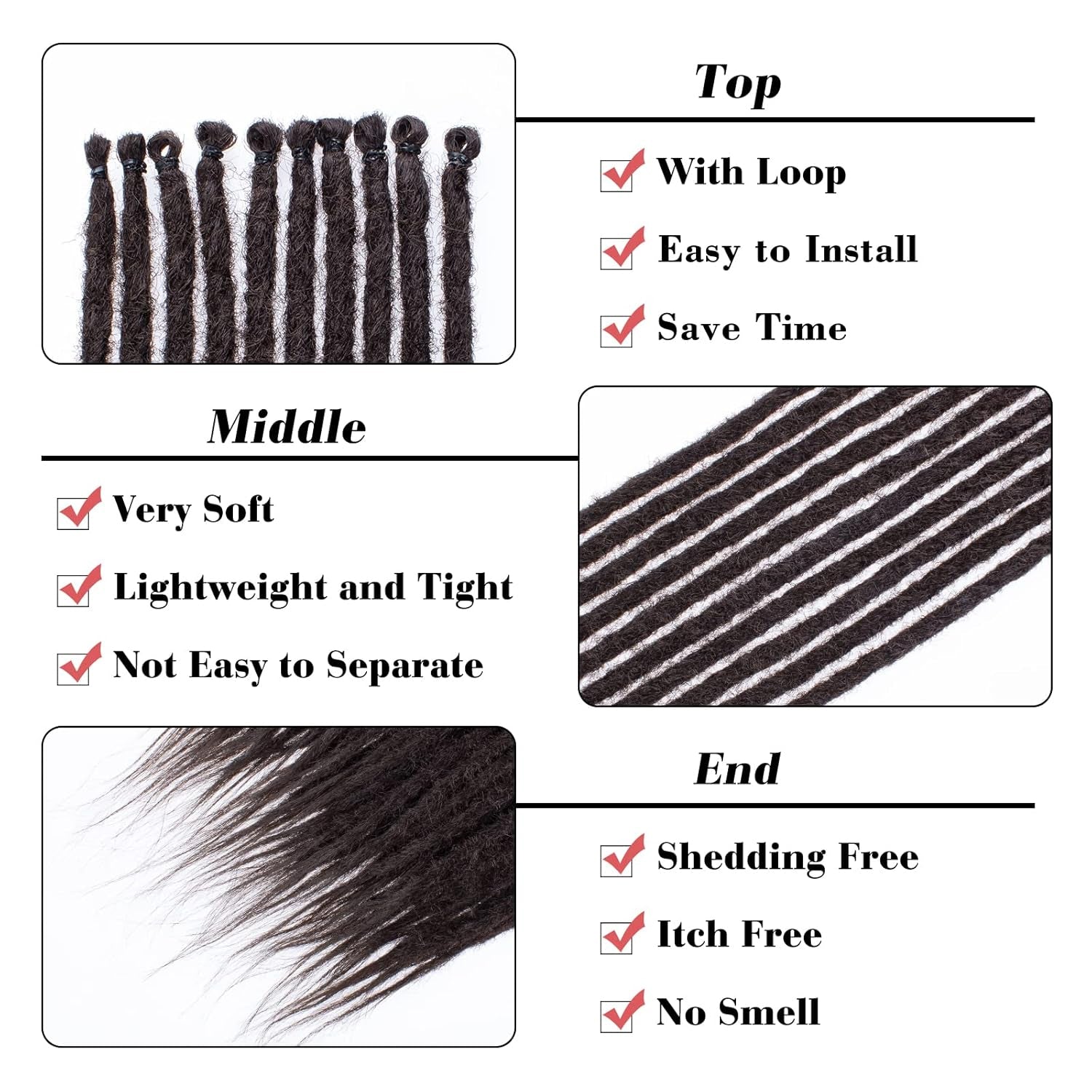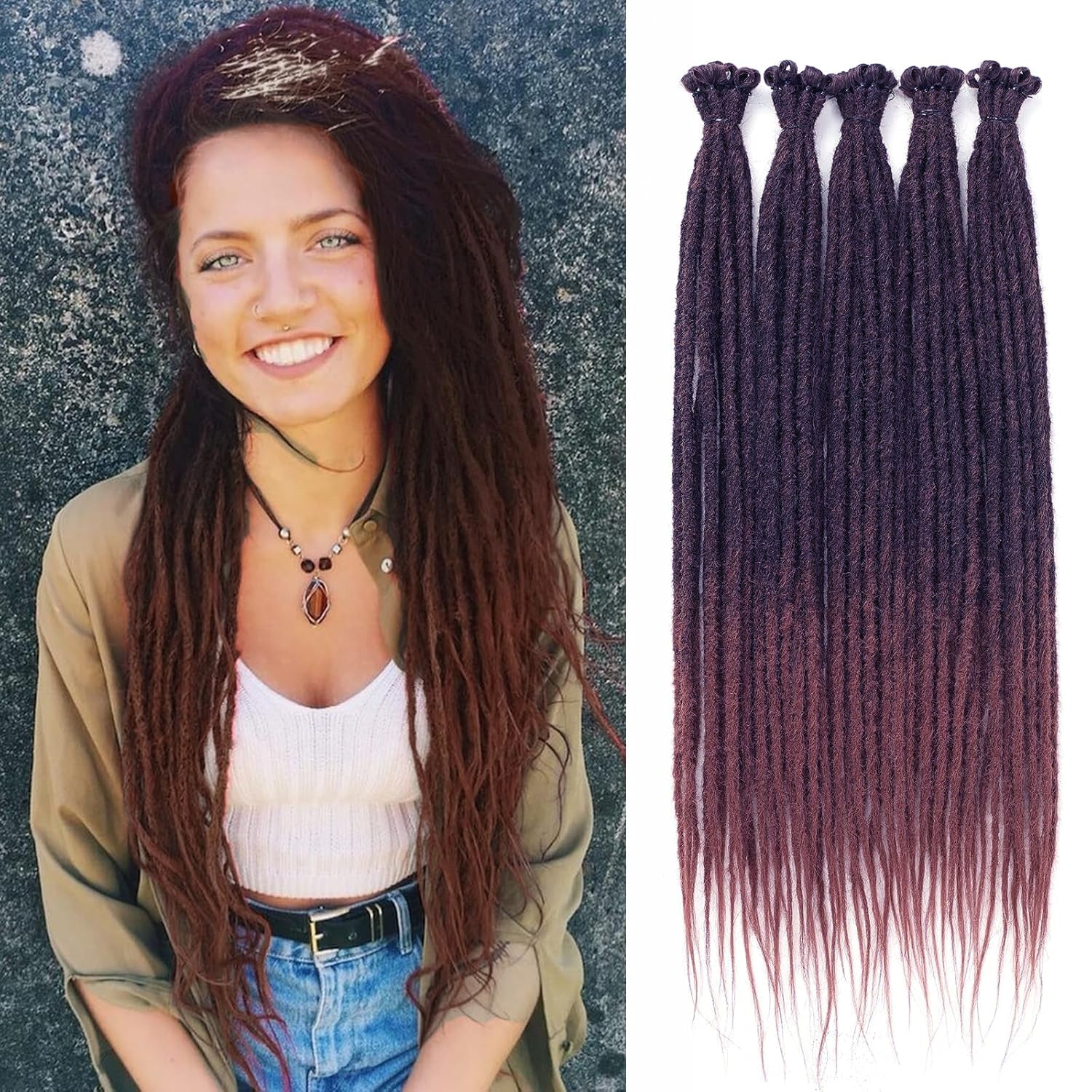 Dreadlock Extensions 24 Inch 10 Strands Pre-Looped Synthetic Locs Natural Color Lightweight & Tangle-Free Easy Install Single-Ended Straight Dreads for Women