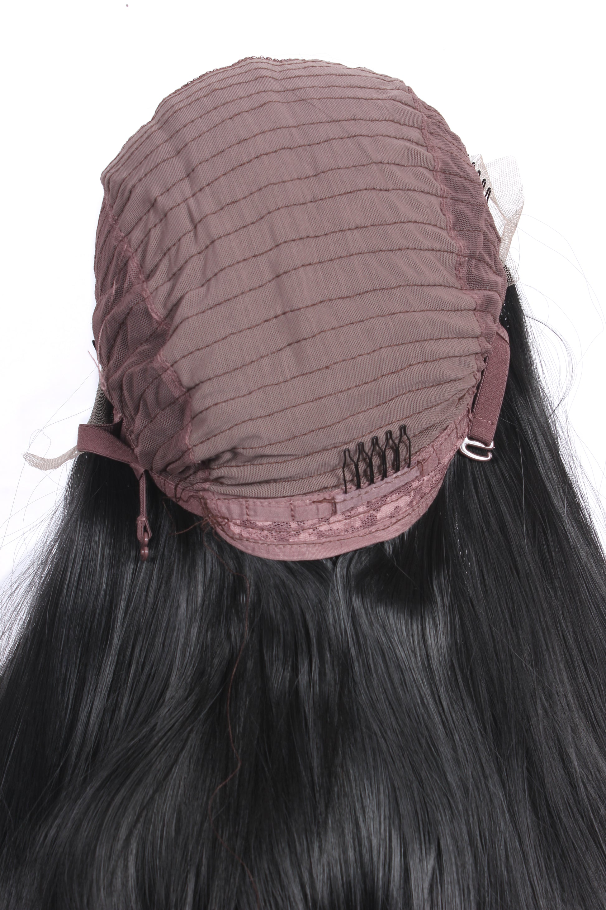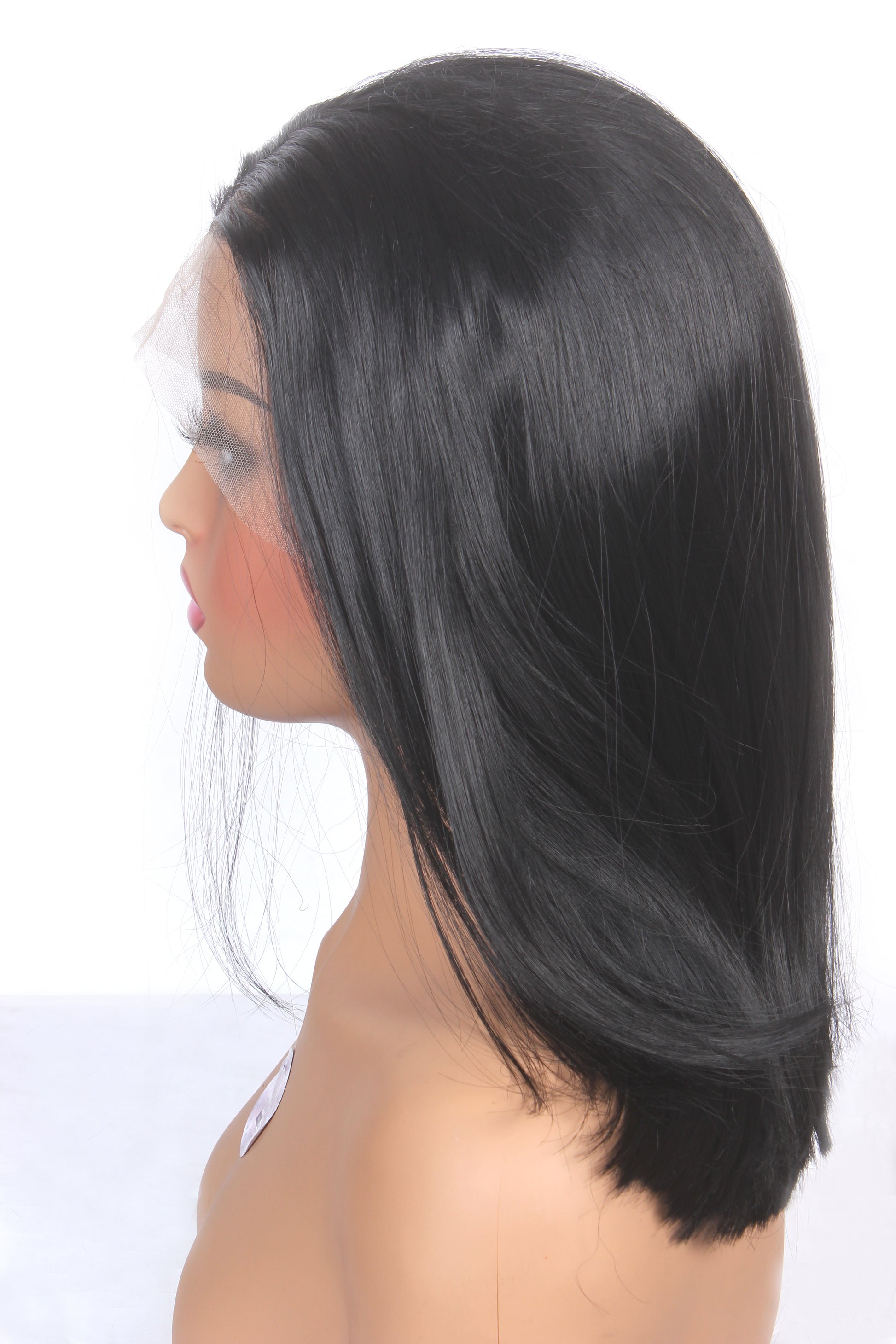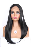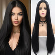 Front Lace Wig – Black Synthetic Fiber, Natural Look & Feel, Glueless with Adjustable Cap, Washable & Long-Lasting