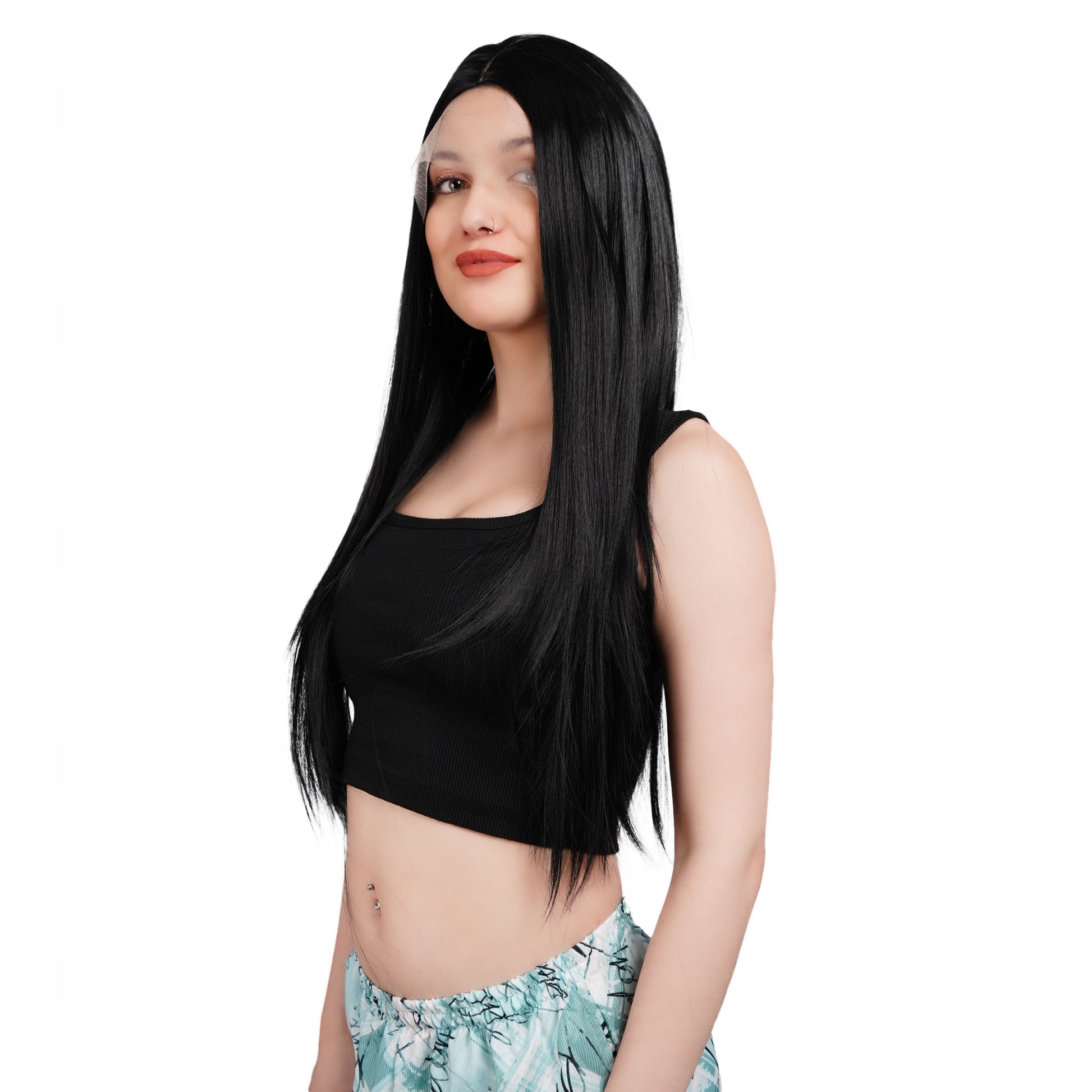 Enhance your everyday look with the Front Lace Wig – Black Premium Synthetic Fiber, designed to give you a natural look and feel without any hassle. This wig is crafted from high-quality synthetic fibers that are soft, shiny, and lightweight, ensuring comfort and style all day long. The glue less design with an adjustable cap provides a secure and comfortable fit for women and girls, while the stretchable skin base blends seamlessly for a realistic hairline. Perfect for daily wear, parties, events, or photoshoots, this wig is washable, reusable, and long-lasting, offering effortless beauty whenever you need it.