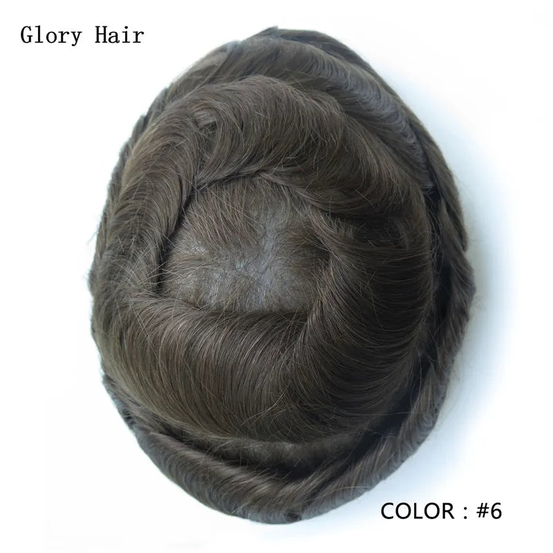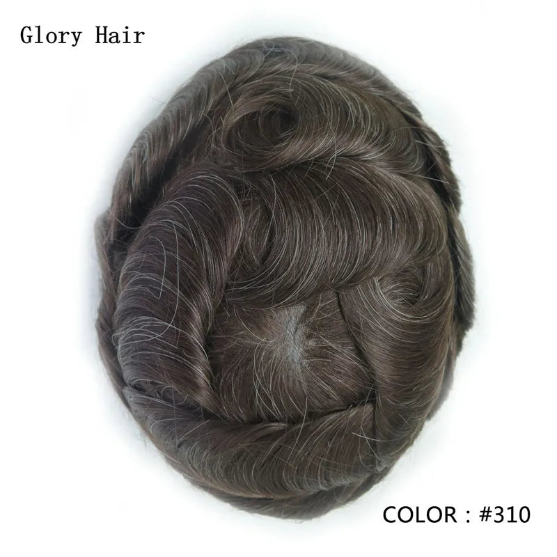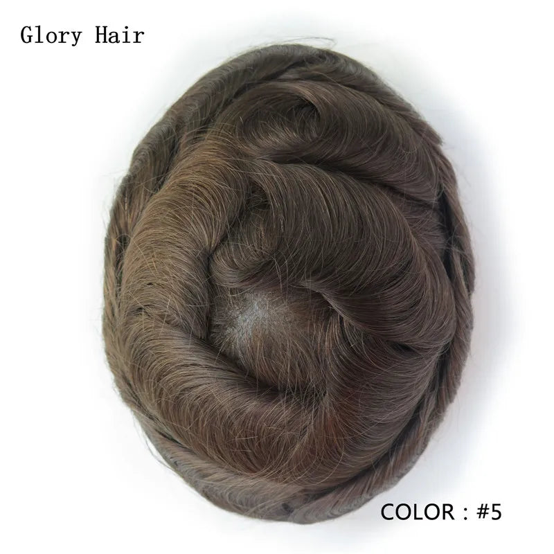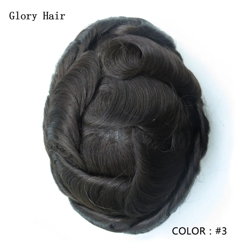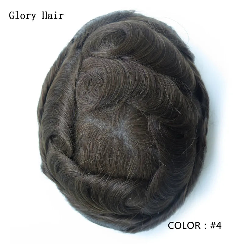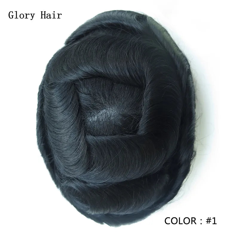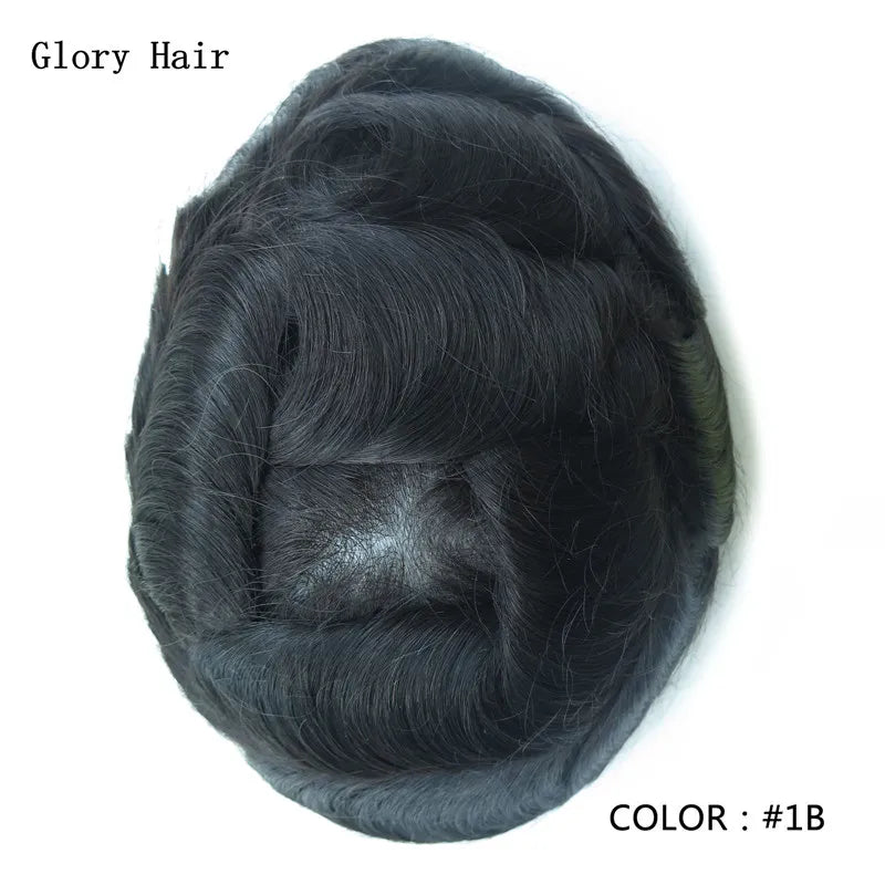 GLORYHAIR Skin - Durable Thickness Skin Men Toupee PU Men's Capillary Prothesis Fine Quality Indian Human Hair Men Wig