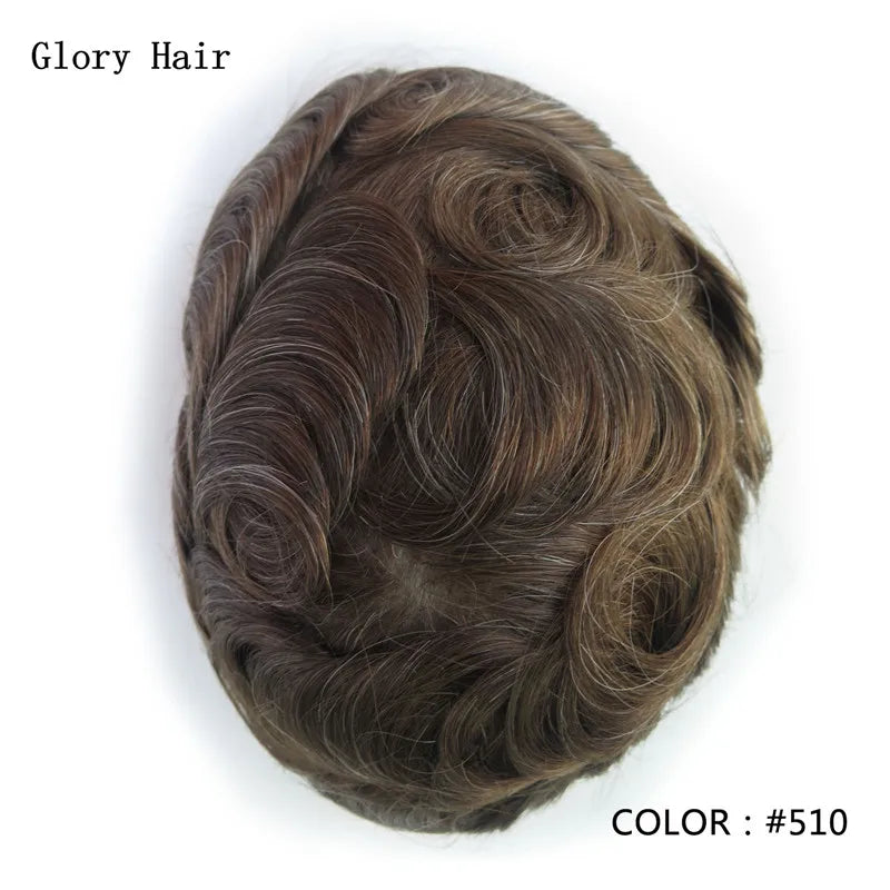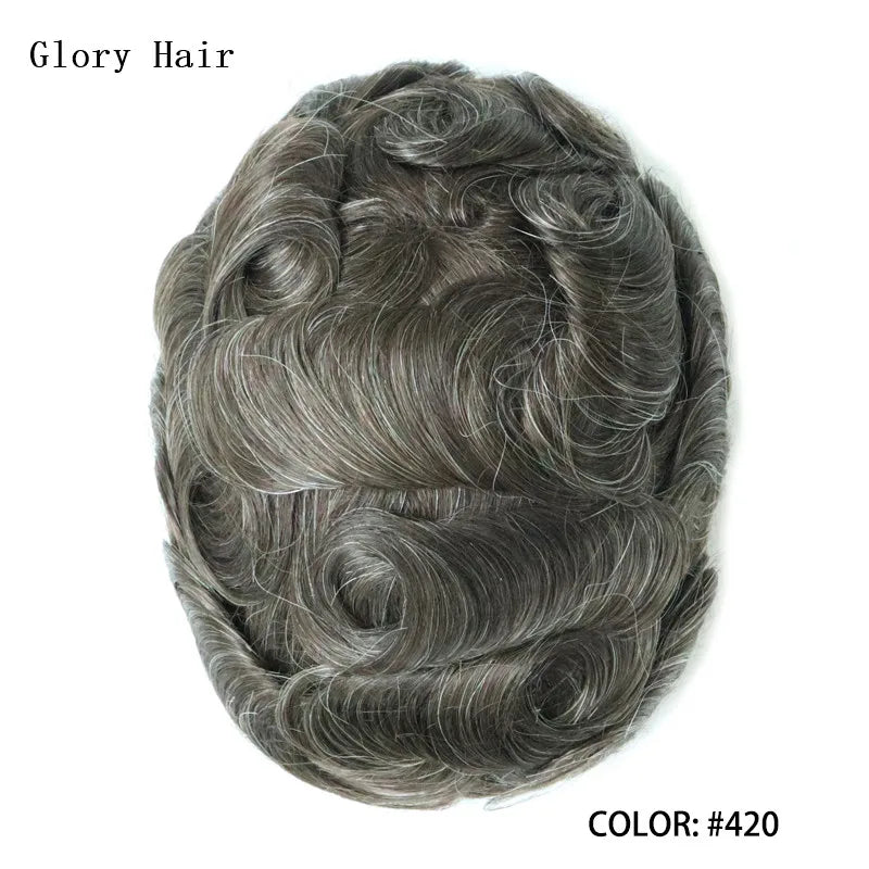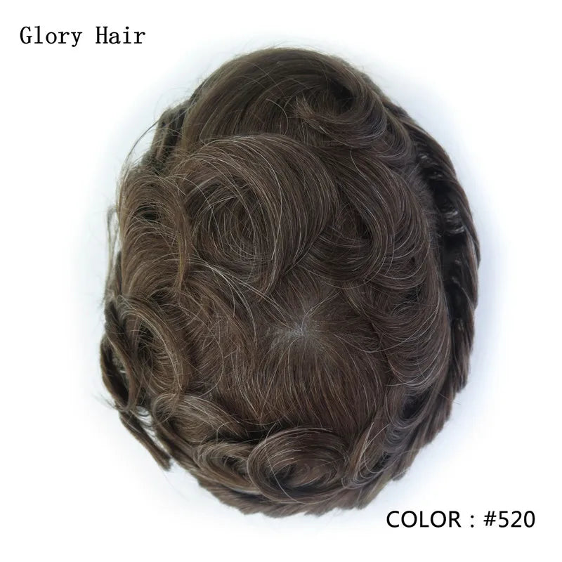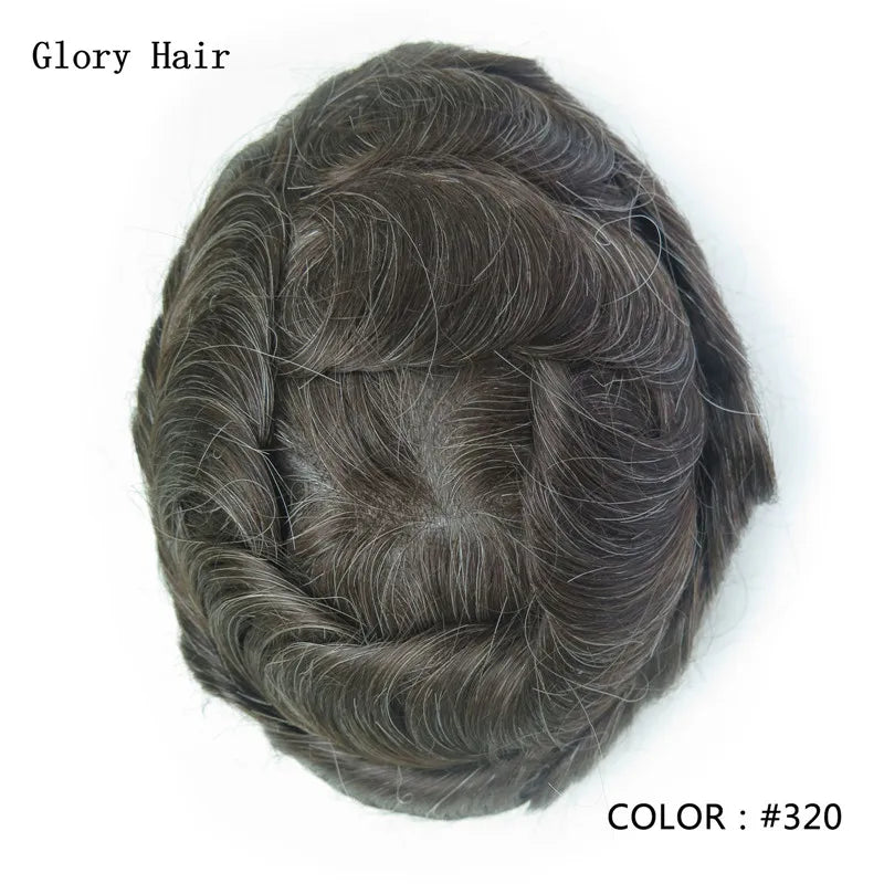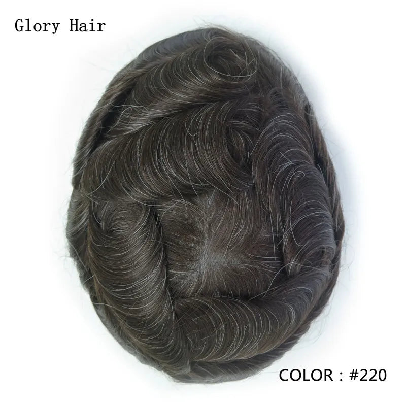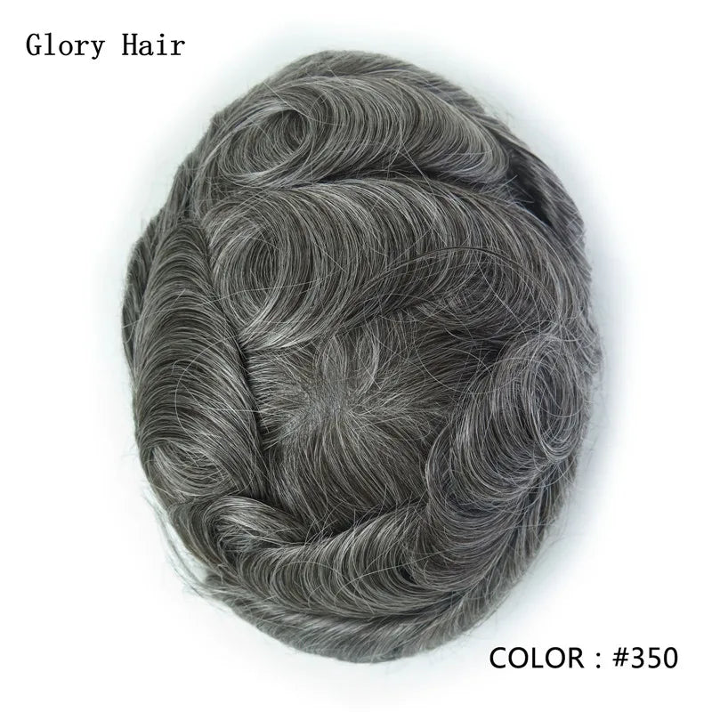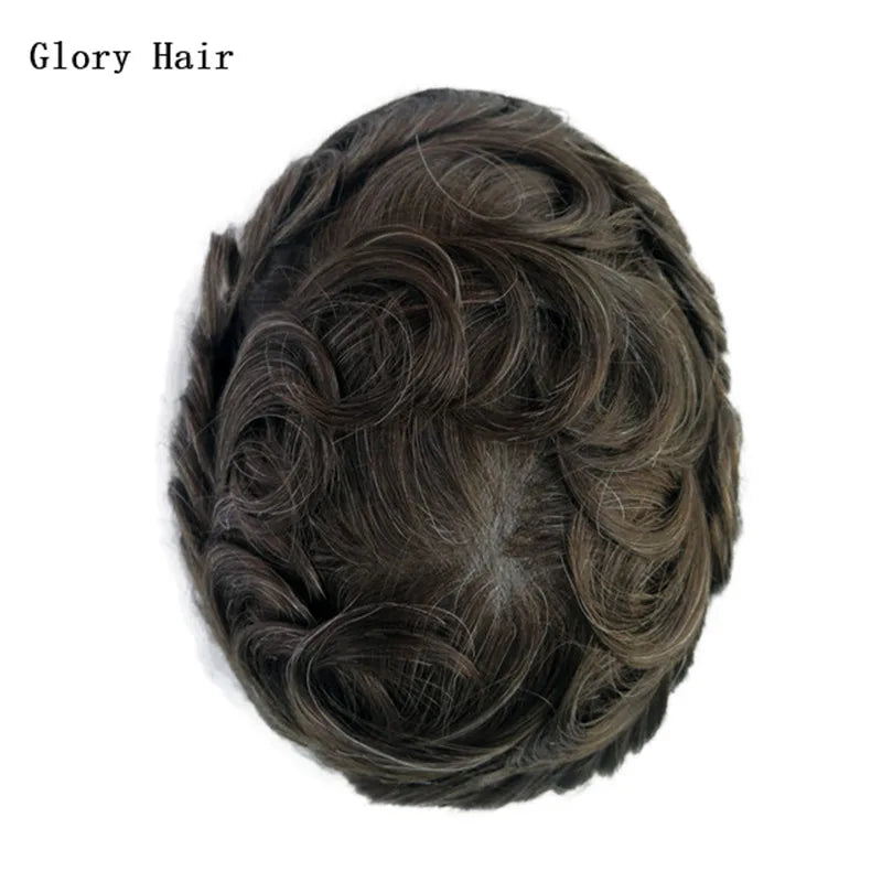GLORYHAIR Skin - Durable Thickness Skin Men Toupee PU Men's Capillary Prothesis Fine Quality Indian Human Hair Men Wig