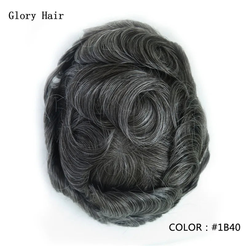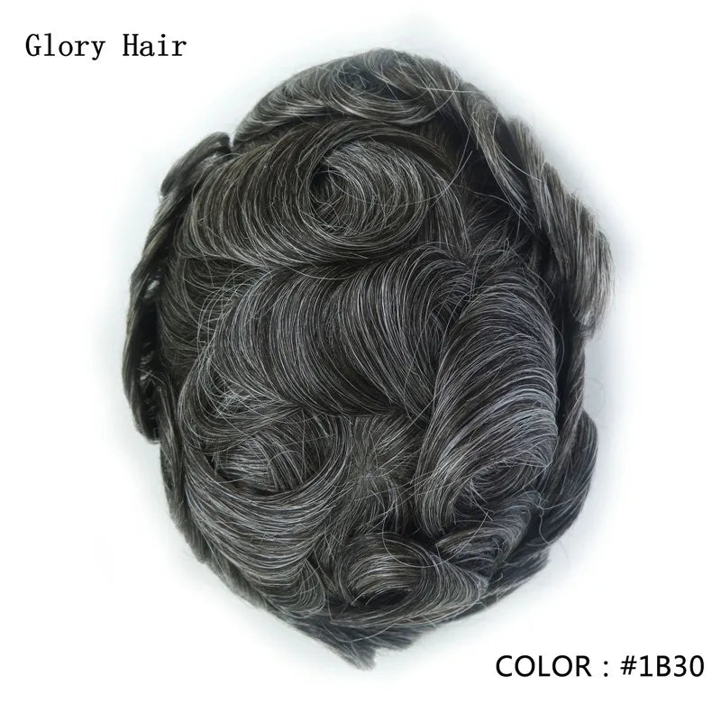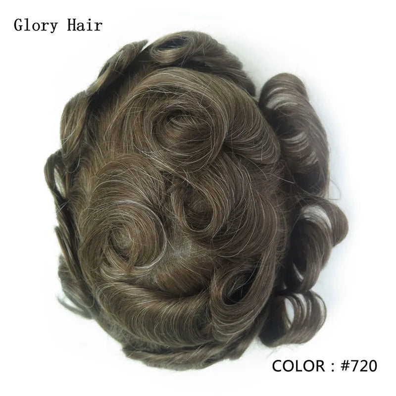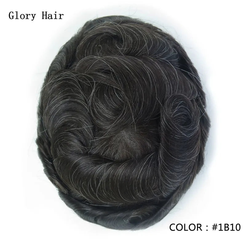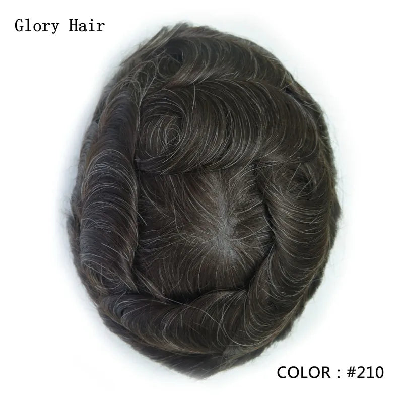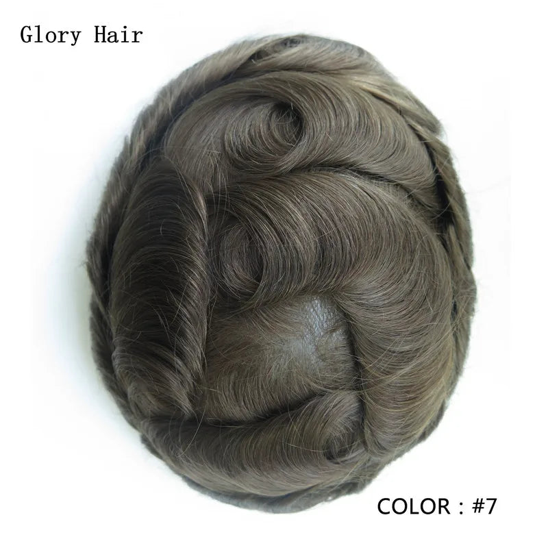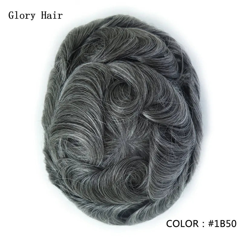 GLORYHAIR Skin - Durable Thickness Skin Men Toupee PU Men's Capillary Prothesis Fine Quality Indian Human Hair Men Wig