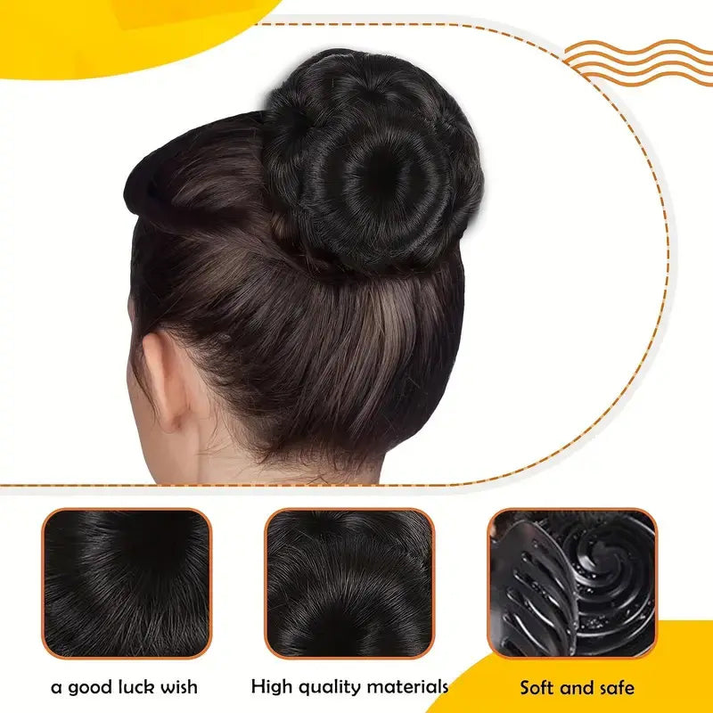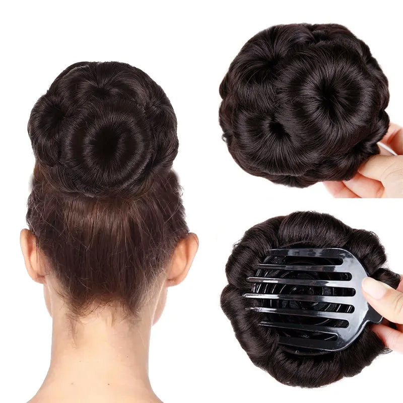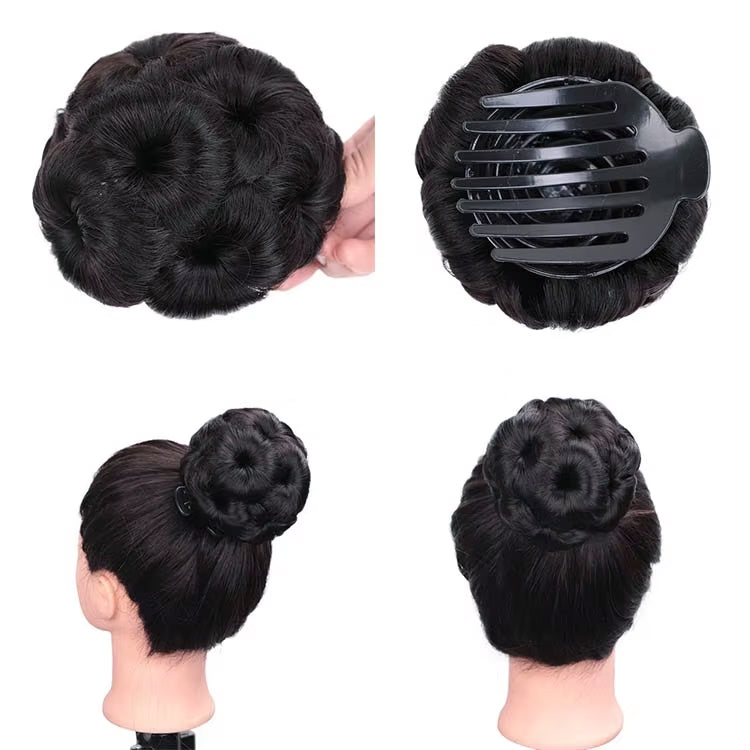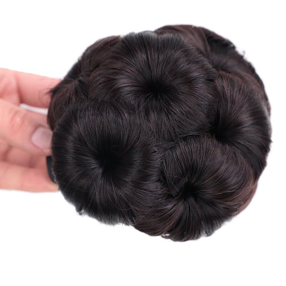 Flower Shape Synthetic Hair Bun Extension – designed to give you a beautiful, natural look in seconds. Made from Great -quality synthetic fibers, this hair bun features a natural color and soft, durable texture, ensuring a realistic appearance and long-lasting wear. The free size design makes it suitable for all hair types and lengths, while the secure claw clip attachment provides a perfect fit without slipping. Whether you're heading to a wedding, party, or a casual outing, this elegant hair bun adds instant volume and charm to your hairstyle. Ideal for women, girls, and brides, this stylish hair bun is a quick and convenient solution for achieving a flawless up do with minimal effort.