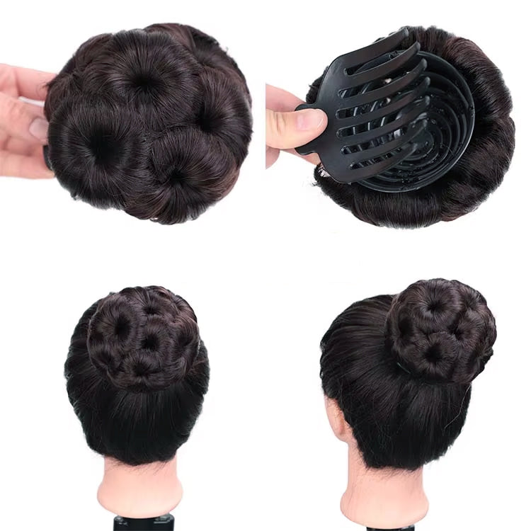 Hair Bun Free Size Natural Color Soft & Durable Claw Clip Synthetic Hair Flower Shape Bun Hair Extension for Women, Girls & Bridal Hairstyles