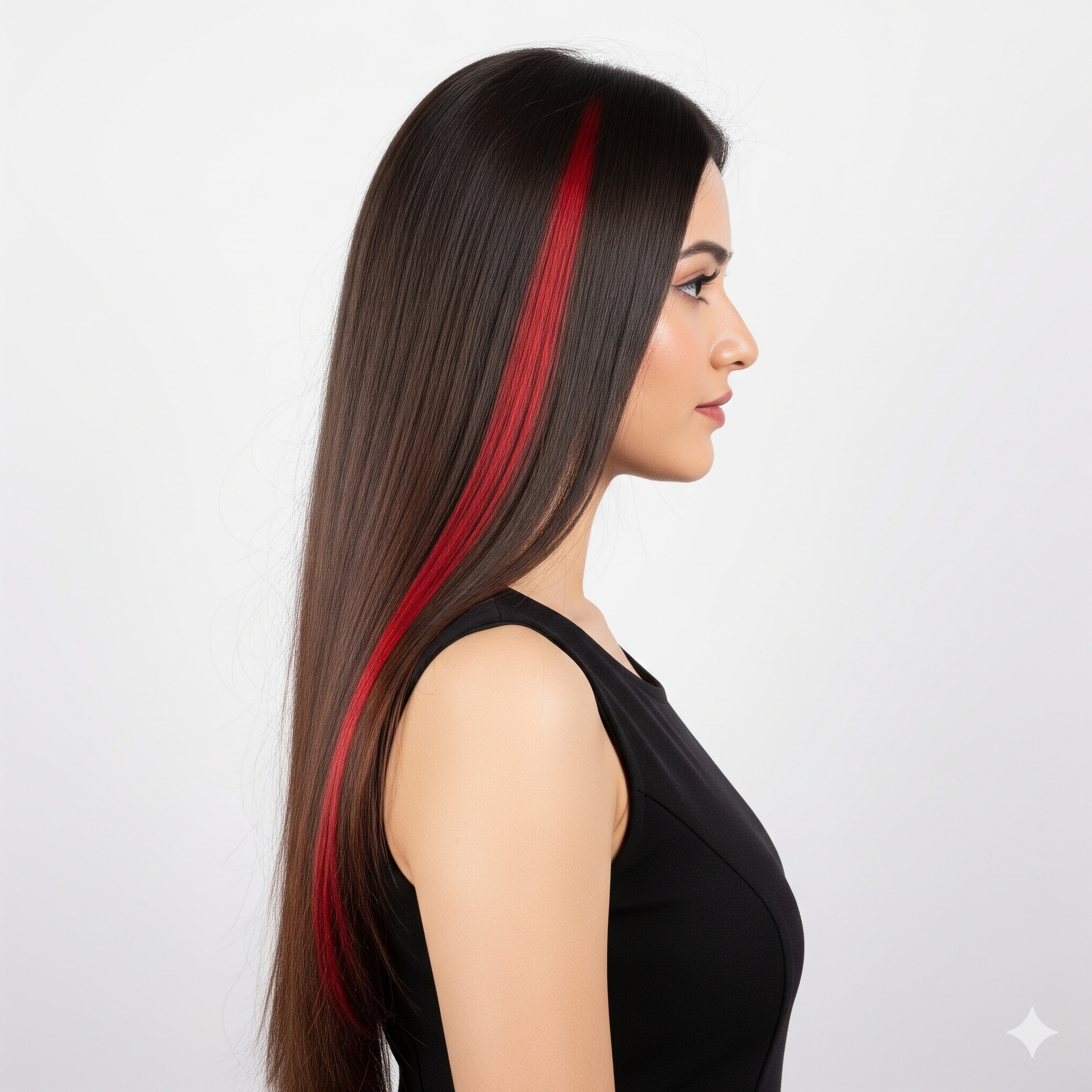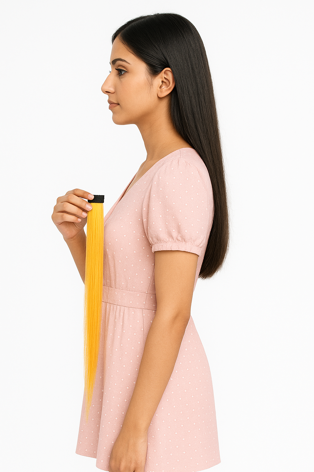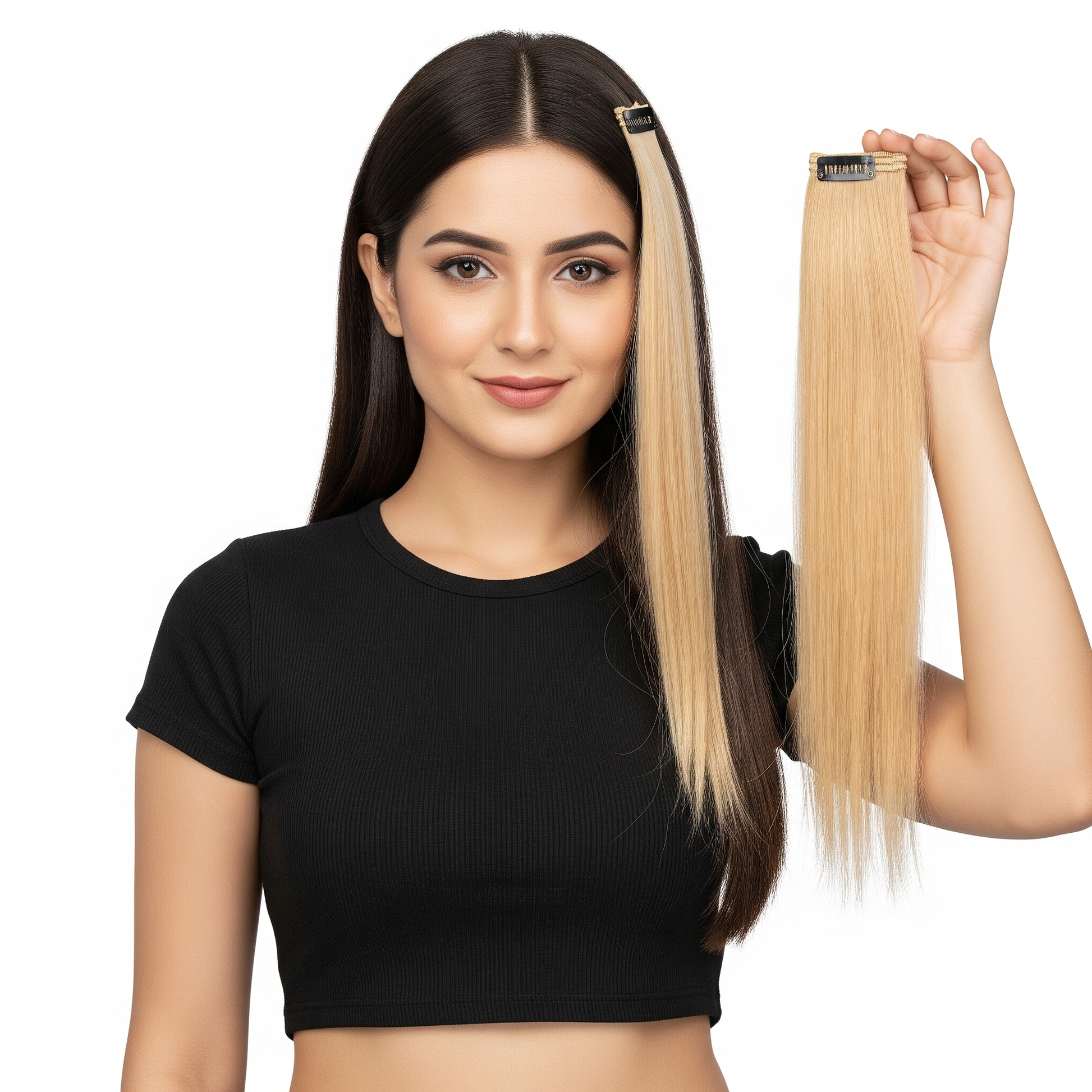 Hair Streaks Clip On – Premium Quality Human Hair Streaks for Women, Length 18-22 Inch, Straight Texture – Perfect Hair Highlight Streaks to Instantly Add Style & Dimension Without Damaging Natural Hair. These Clip-on Hair Color Streaks are an Easy Alternative to Hair Dye, Giving You a Gorgeous Makeover Anytime. Designed for Women Who Love Experimenting with Fashion, Our Hair Streaks are Lightweight, Comfortable, and Blend Seamlessly with Natural Hair. Whether You Want to Add Bold Highlights for a Party, Subtle Streaks for Daily Wear, or Temporary Color Effects for Special Occasions, These Clip-On Hair Streaks are the Perfect Choice. Made from 100% Human Hair, They Can Be Styled, Straightened, or Washed, Offering a Natural Look and Long-Lasting Shine. The Secure Clips Ensure Hassle-Free Application and Removal Within Seconds, Making Them Travel-Friendly and Reusable. Ideal for Women of All Ages, These Streaks Enhance Your Personality and Help You Try New Looks Without Commitment. Available in Multiple Shades to Match Different Hair Colors and Styles. Upgrade Your Hairstyle Instantly with These Professional-Quality Hair Highlight Streaks – A Must-Have Accessory for Fashionable Women Who Want to Stand Out!