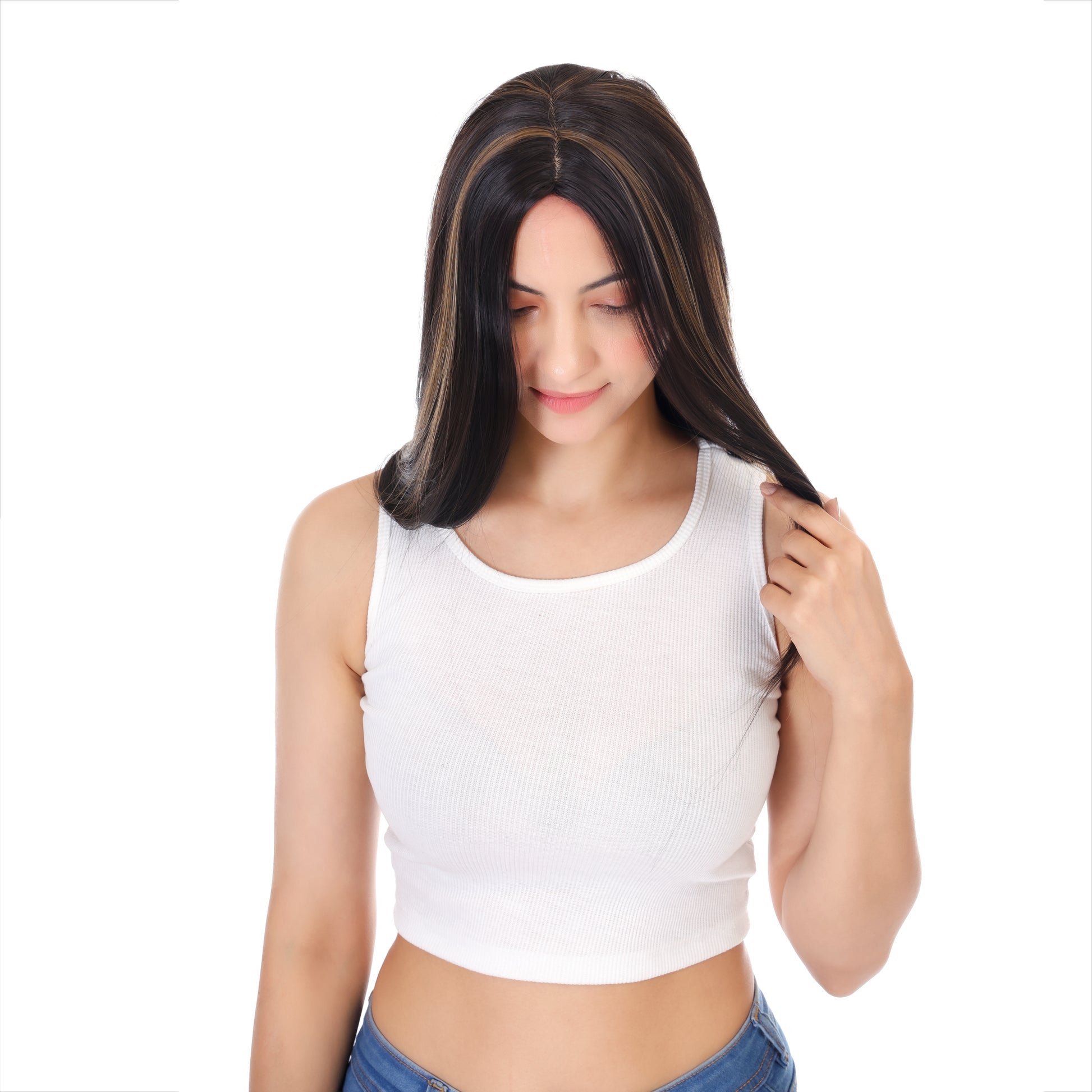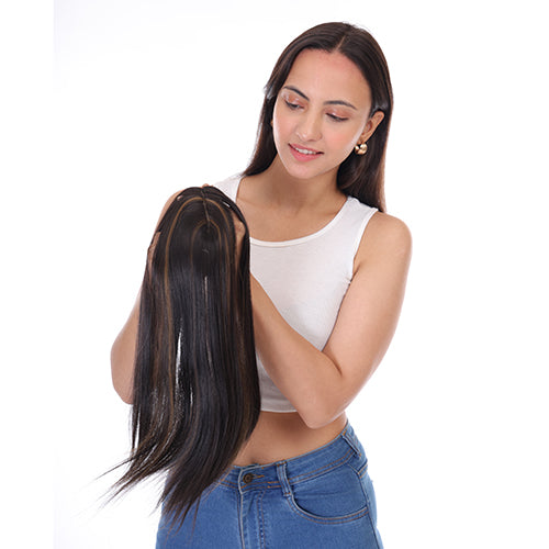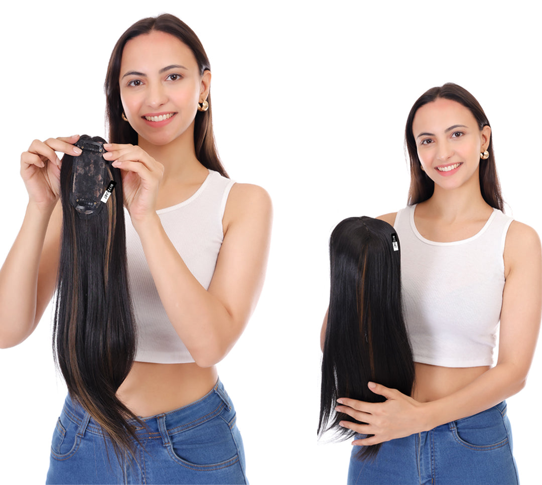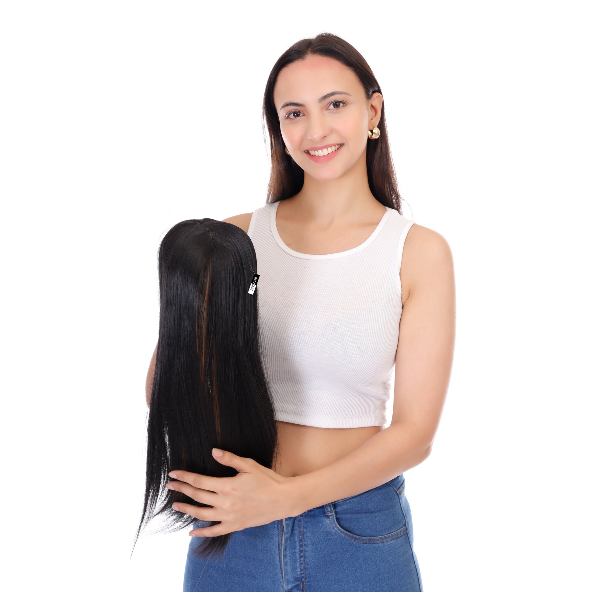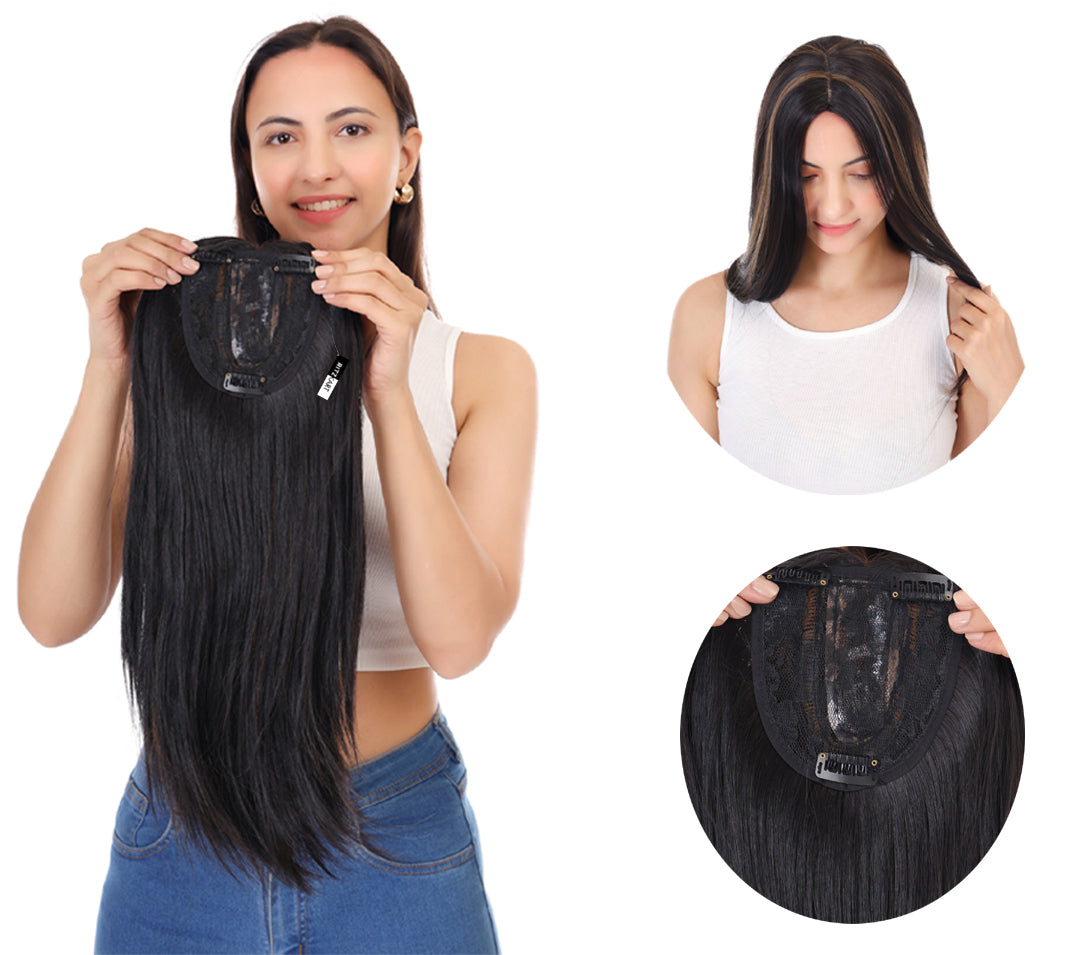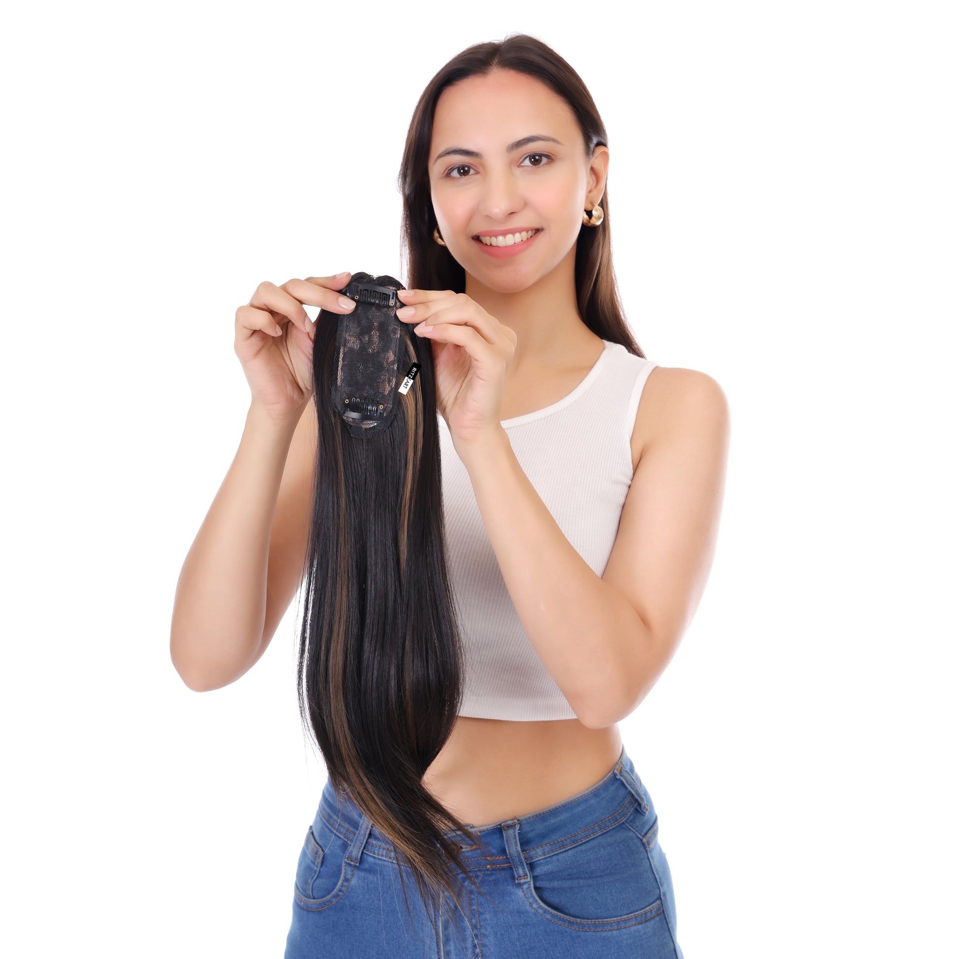 Hair topper for women center hair line topper Synthetic fiber product , feel natural hair toper all purpose size Black With Golden Highlight Mix Color 20 Inch Front Baldness Coverage stylish By Ritzkart