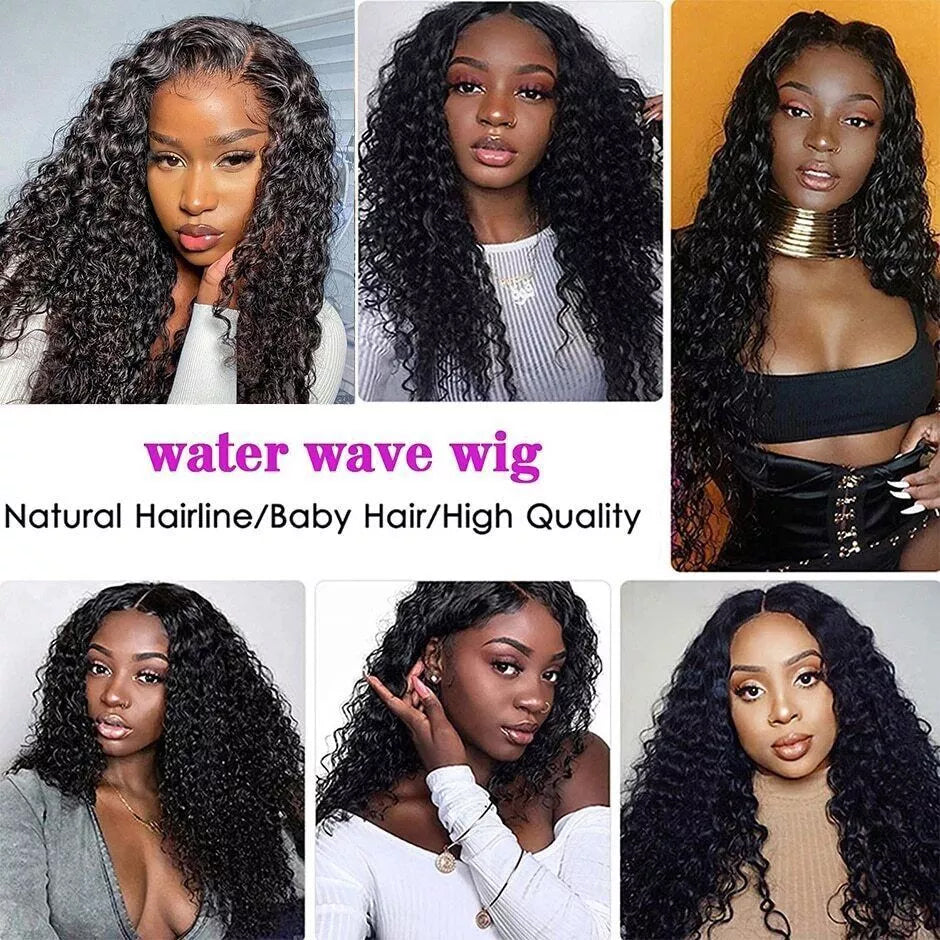Hair Wig 13x4 Lace Front Natural Black Water Wave Human Hair Wig Pre-Plucked Hairline High-Density Soft Texture Transparent Breathable Lace Heat-Resistant Tangle-Free (DSP)