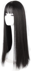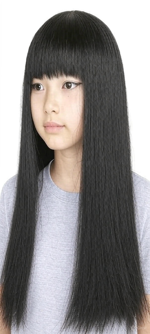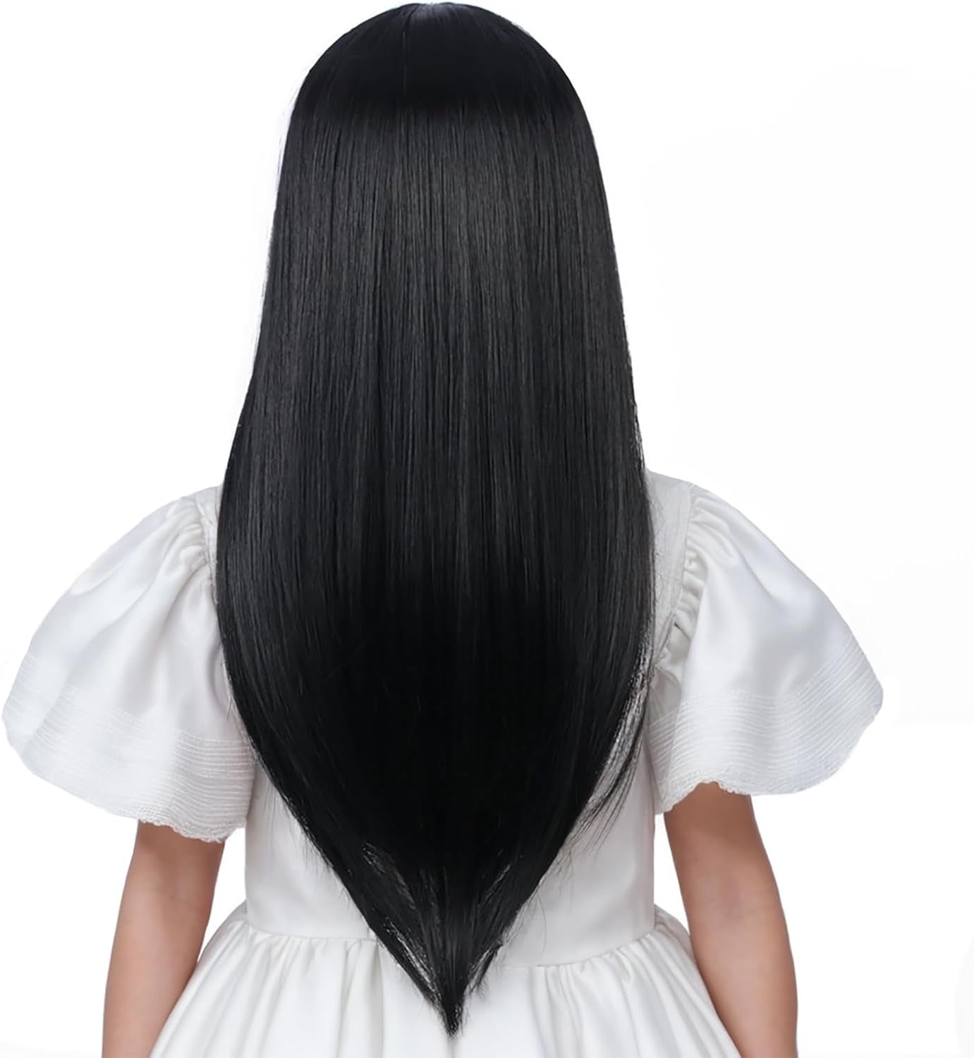 Kids Wig Soft Synthetic Fiber Hair with Front Fringe Style Straight Black 22-Inch Kids Wig for Girls Adjustable 20-Inch Cap with Hooks for Small Head – Lightweight & Comfortable Fit for Dress-Up and Daily Fun