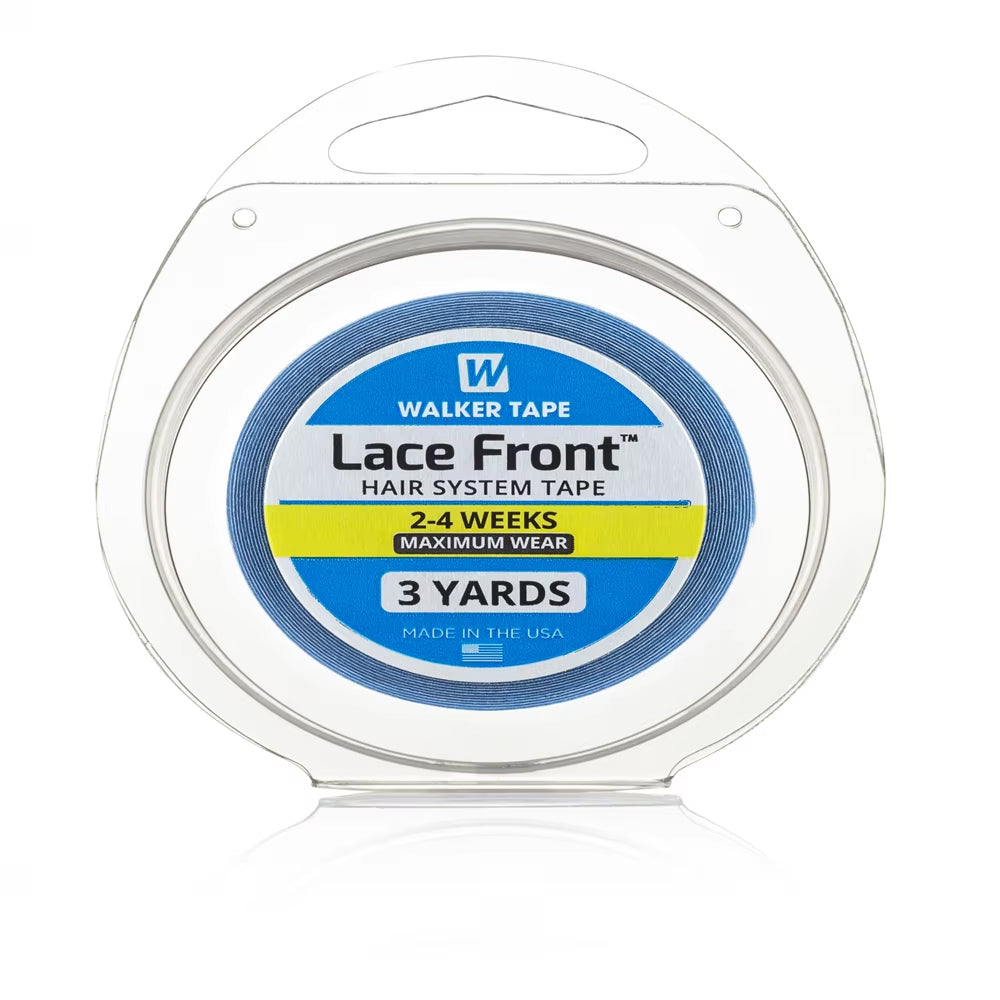 Original Walker USA Lace Front Hair System Tape, known for its ultra-thin, double-sided adhesive specially designed for lace wigs and hair systems. It provides a strong and secure hold for 2 to 4 weeks, is easy to apply and remove, and works perfectly with lace bases. Available in 3, and 12-yard rolls – choose from bulk packs of 5, 25, or 50 pcs to suit personal, salon, or wholesale needs.