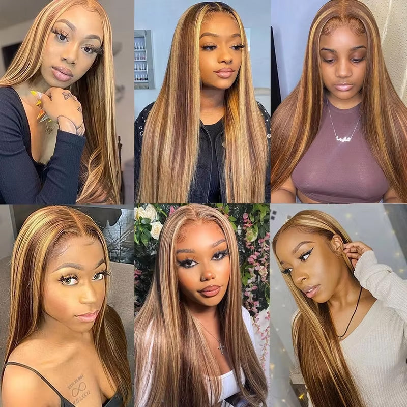 Highlight Lace Front Wig Human Hair – Honey Blonde, Black Natural, Brown 4x4 Closure, T-Type, 13x4 Inch Lace Silky Straight Brazilian Remy Hair