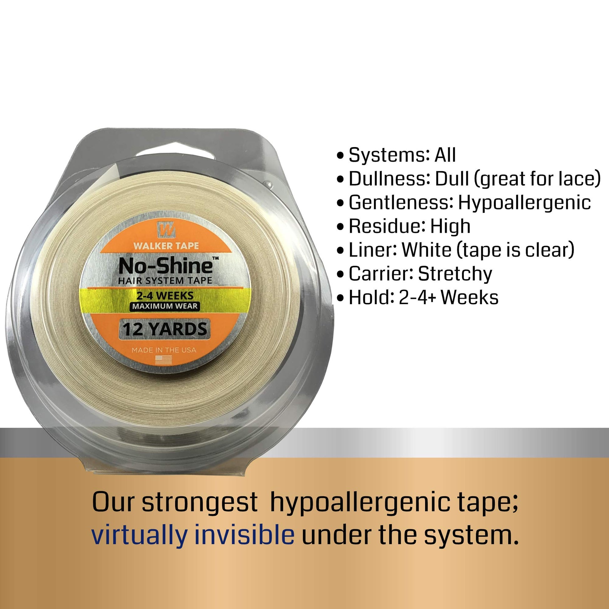 No Shine Tape for Hair System Thin Double-Sided Adhesive 3-12 Yards Roll Walker USA Wholesale Packs (5, 25, 50 pcs)