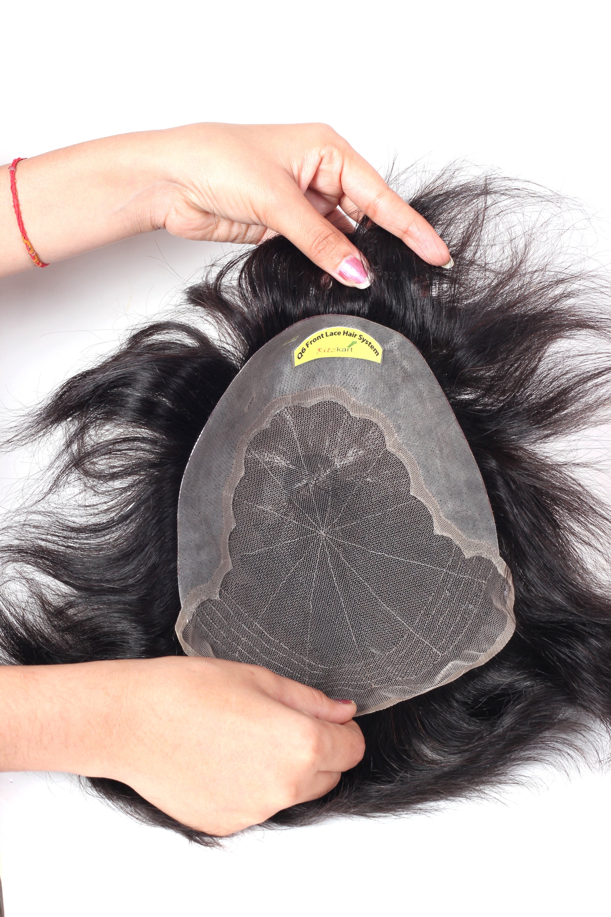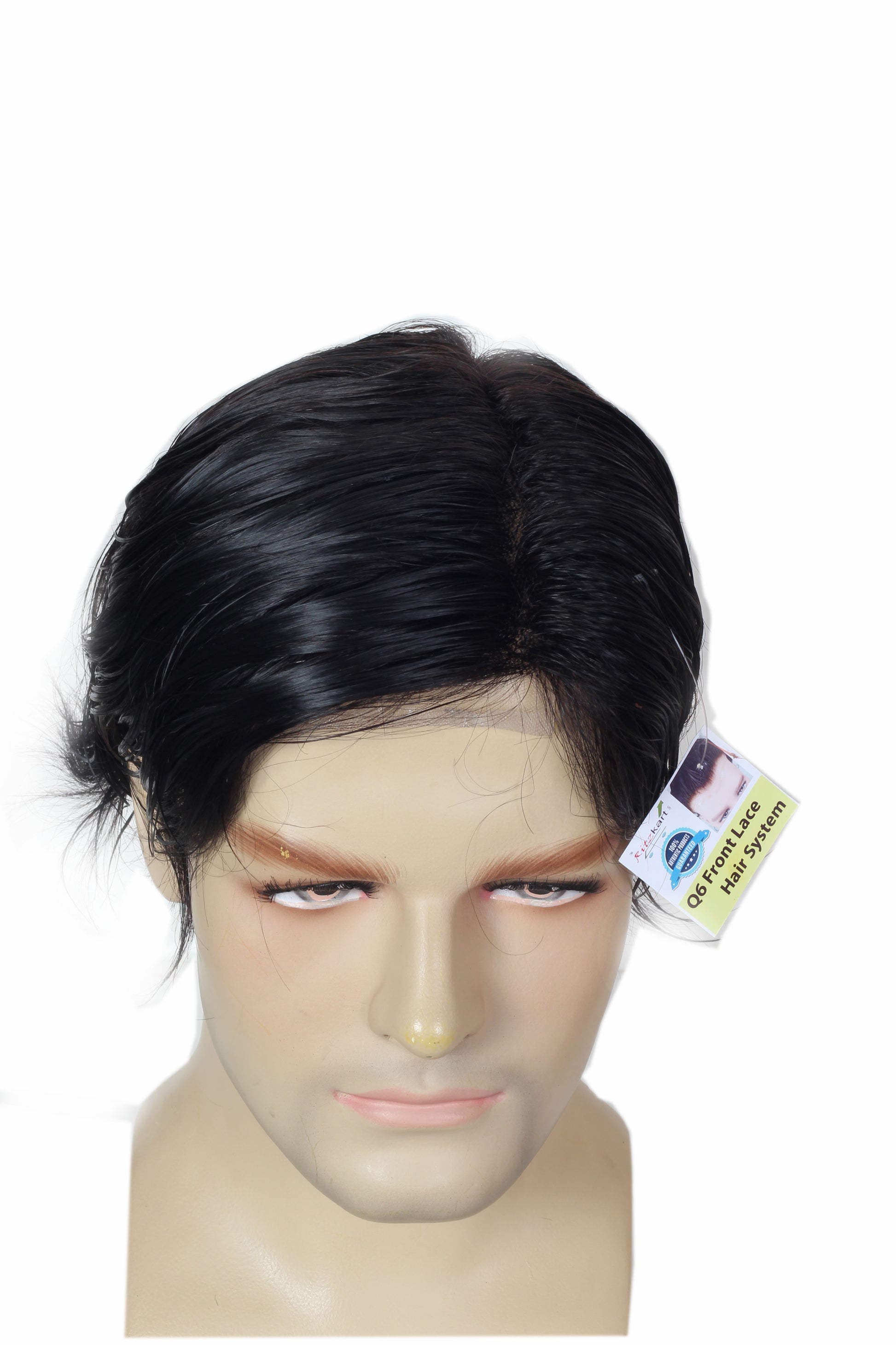 Q6 Hair Patch Front hair Line Clear PU base back lace French Black Men Straight hair wig