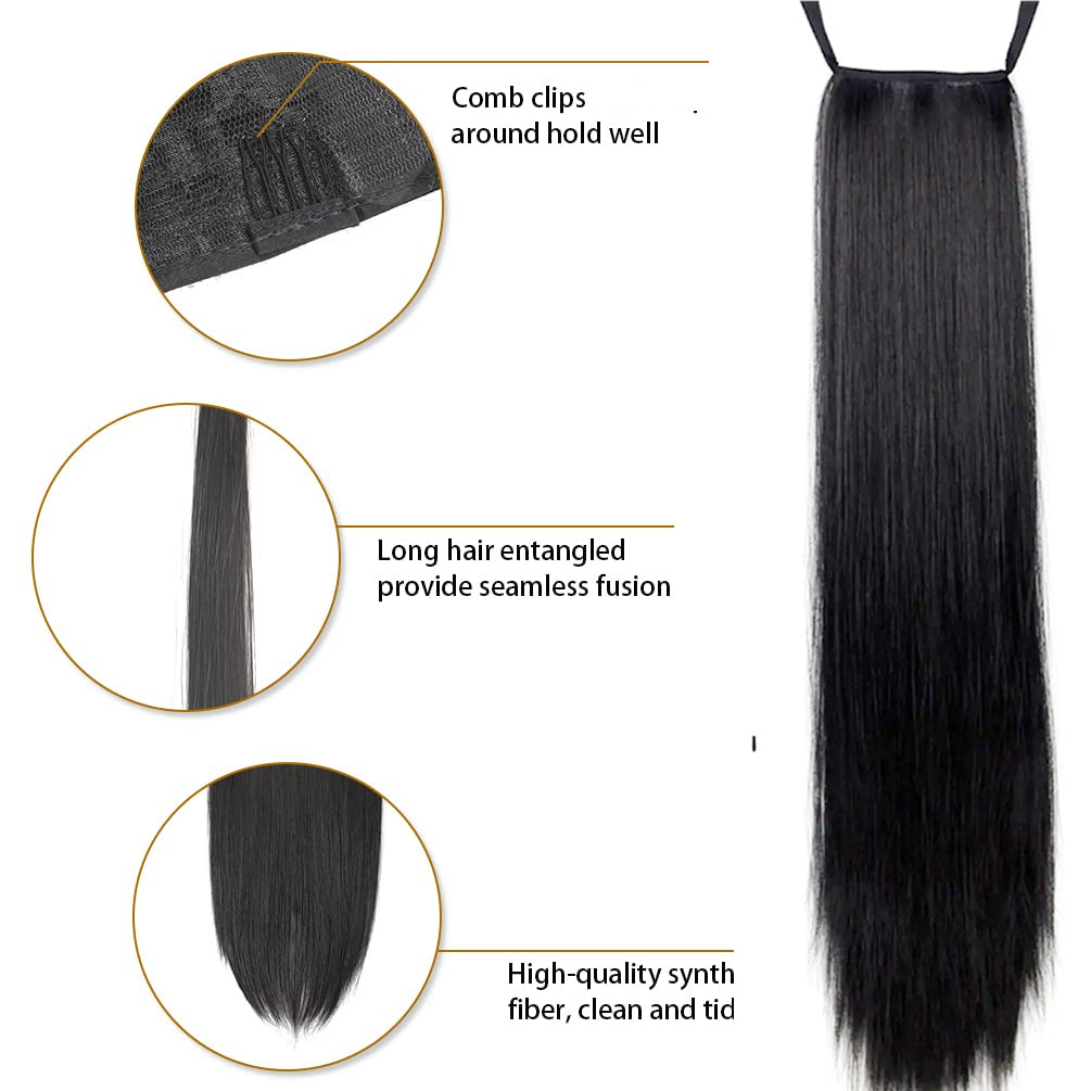 Ribbon Ponytail Natural Straight & Synthetic Long Hair , Clip & Ribbon Attached For Comfortable Fit 32-Inch Adds Volume Easy to Apply Perfect for Casual & Party Hairstyles For Girls & Women Brand By Ritzkart