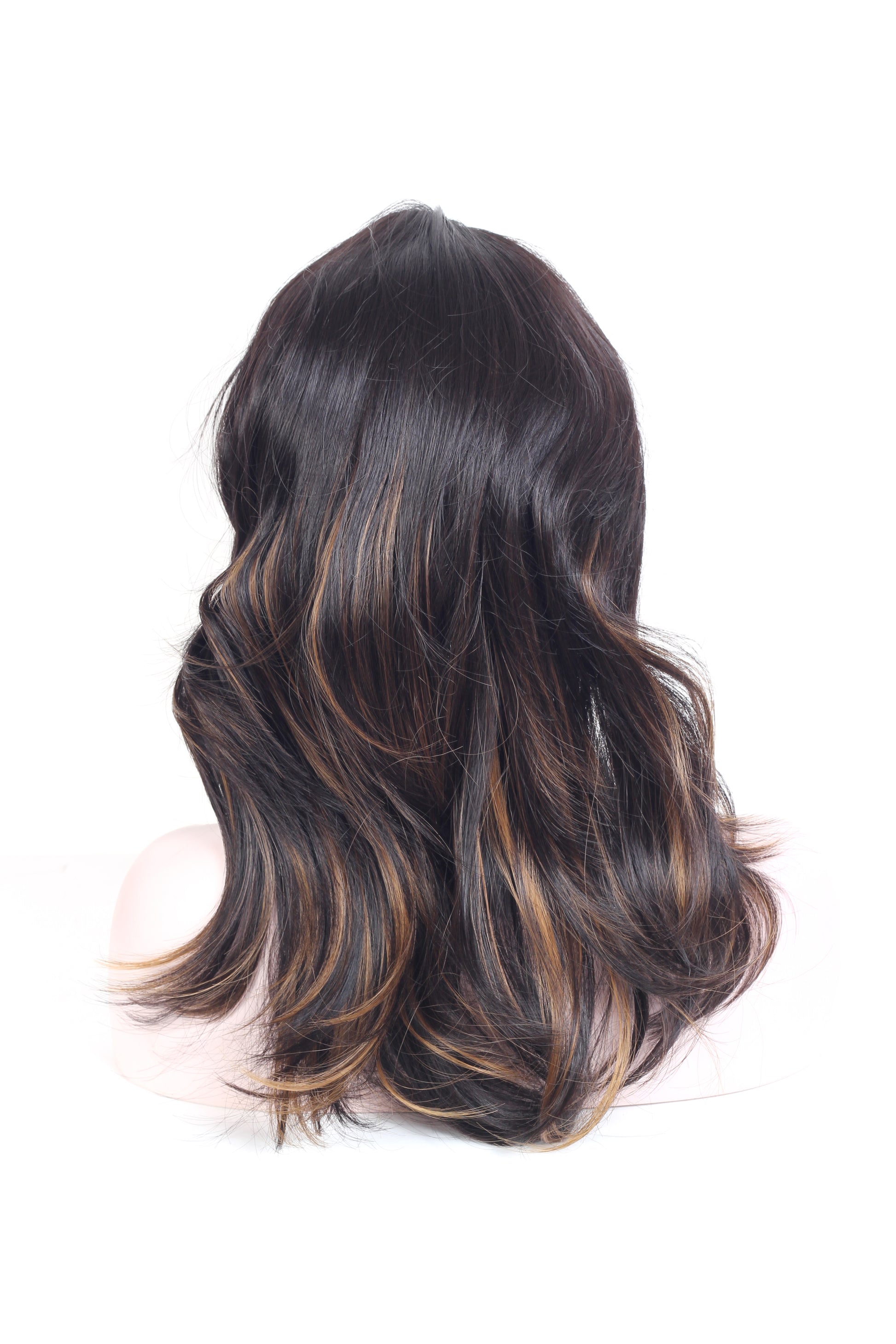 Ritzkart 22 inch Black & Golden Highlight Wavy Long Original Korean Fiber Synthetic Soft Hair Full Head Glueless Hair Wig For Women Excellent quality 100% heat resistance fiber made wig its made of heat resistance fiber material. You will be amazed by the quality. Wearing it, it can bring you more confidence, and more charm! It is both natural looking and soft touch. You can wear it to parties as well as for daily use. The size is adjustable and no pins or tape should be required. It should be fit on most people. All you should need to do is adjust the hooks inside the cap to the correct size to suit your head. The item is easy to wash and care just using a little mild shampoo in cold water Specifications: Season: Whole year Occasion: Casual & party wear Materials: Heat Resistance Fibre..
