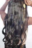Imported Synthetic Hair Extension Natural Black & Golden Highlight 24 inch long & soft touch straight Woman hair extension Naturally blends into your own hair.( you can cut as desired) Ideal for day-to day use attached for easy and secure attachment.They can be fitted at home in minutes with no need of help from a hair stylist. USE very easily day to day Natural look & Its Weight very light.