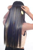 Ritzkart 25 Inch long & soft touch Imported Natural Black & Golden Highlight Synthetic Straight Woman hair extension .