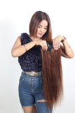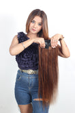 These straight, soft hair extensions are perfect for women looking to enhance their hair effortlessly. The medium brown shade is versatile and complements a wide range of hair colors.