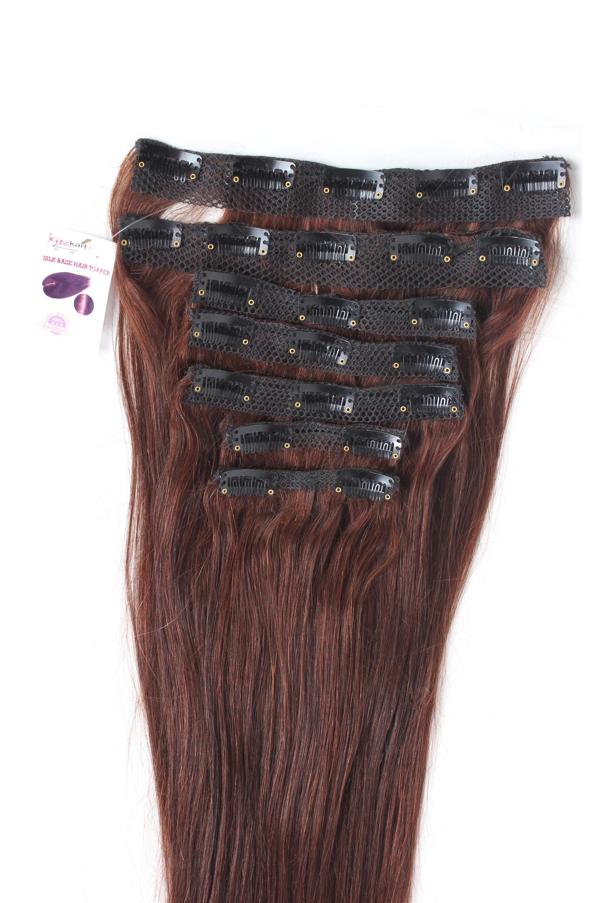 Ritzkart 26 Inch 7Pc Clip On Medium Brown Human Hair Include 2 Pc(5 Clip) 3Pc(3Clip) 2pc(2Clip) Set Of 7 Pc Straight Soft Hair Extension For Women